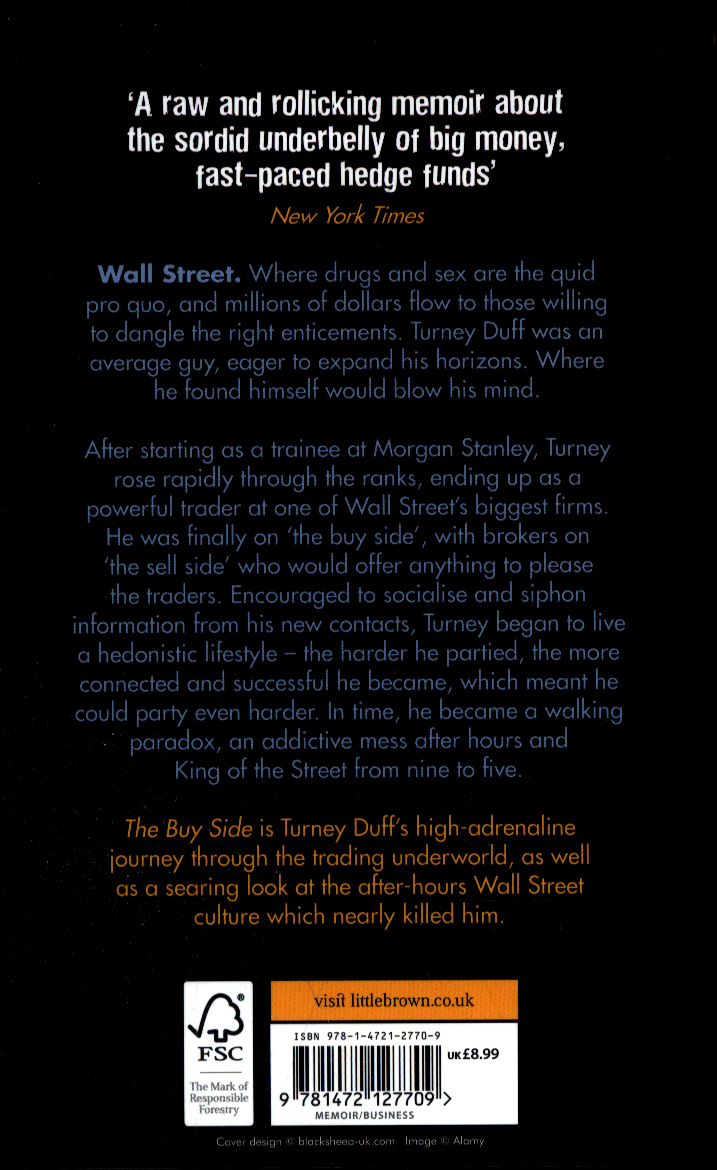 Along the way, he learned some important lessons about himself, and the too-wild-to-believe world of Wall Street trading. In The Buy Side, the money is plentiful and the after-hours indulgence even more so, which has proved to be a bestselling and box office winning combination, as the success of The Wolf of Wall Street attests.