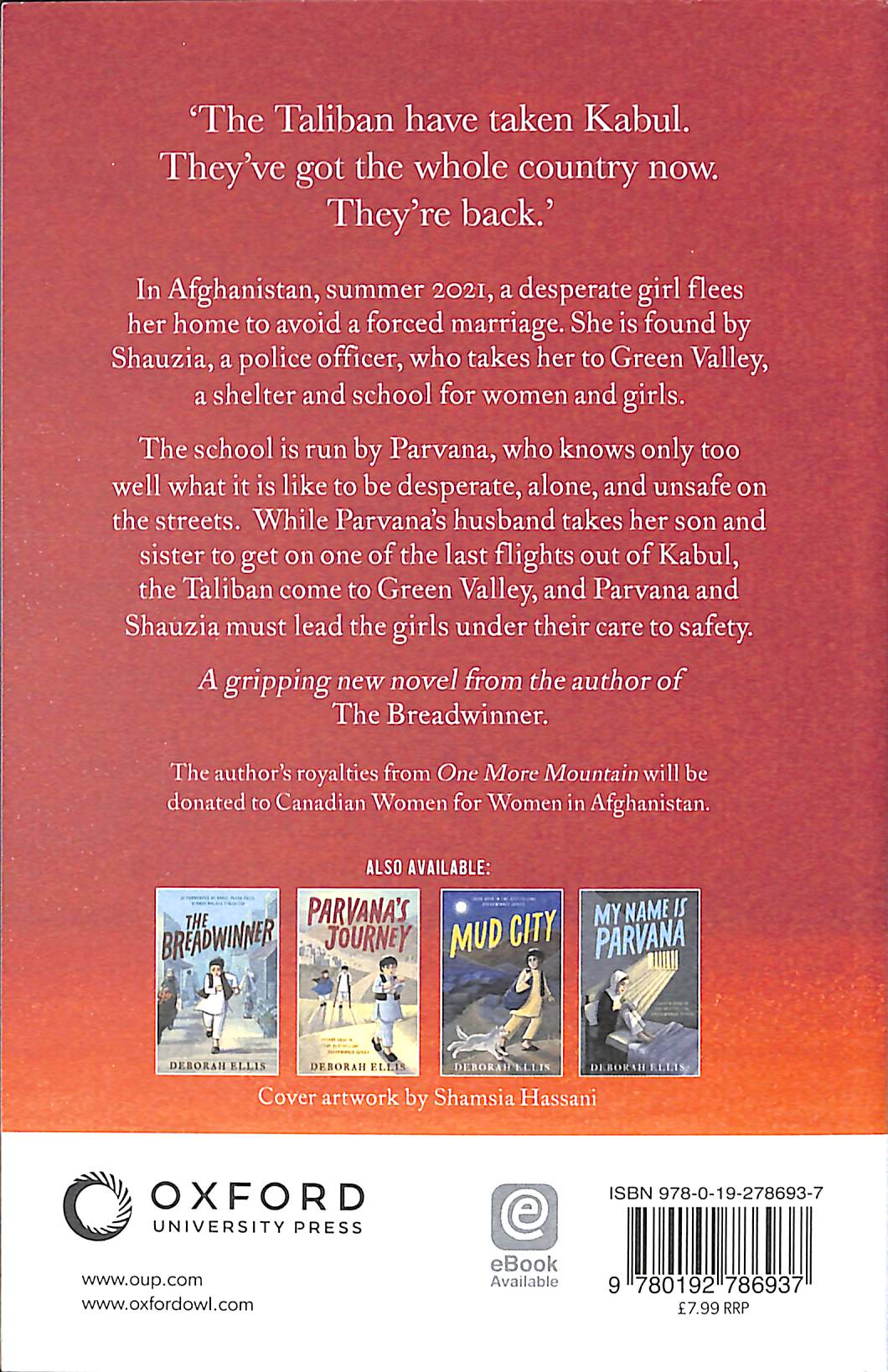 While Asif tries to get Parvana's sister, Maryam, and Rafi on one of the last flights out of Kabul, the Taliban come to the school, and Parvana must lead the girls out of Green Valley and into the mountains. Deborah Ellis is an award-winning author, a feminist and a peace activist who has spent a lot of time in Pakistan, in Afghan refugee camps.