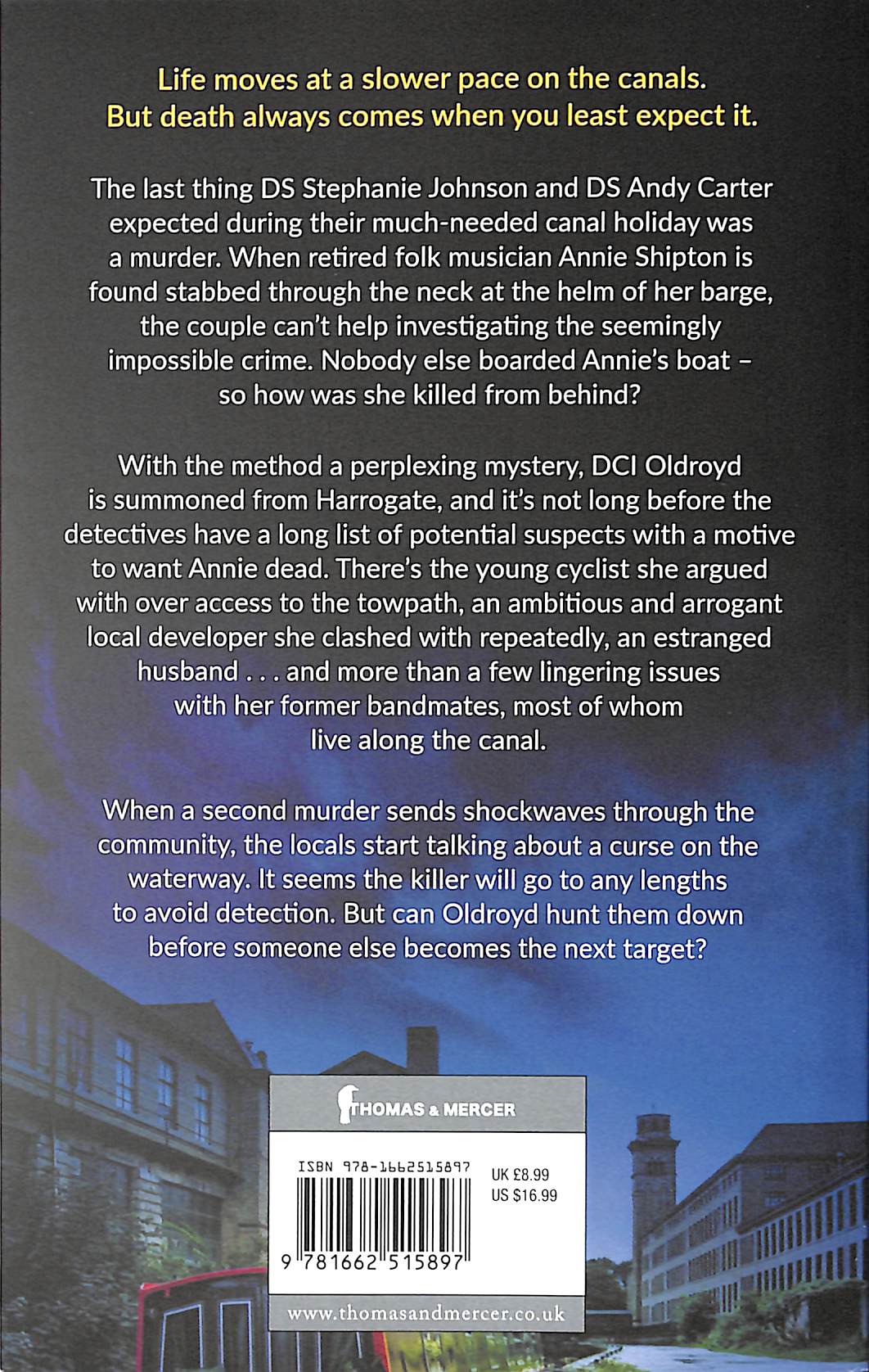 Life moves at a slower pace on the canals. But death always comes when you least expect it. The last thing DS Stephanie Johnson and DS Andy Carter expected during their much-needed canal holiday was a murder.