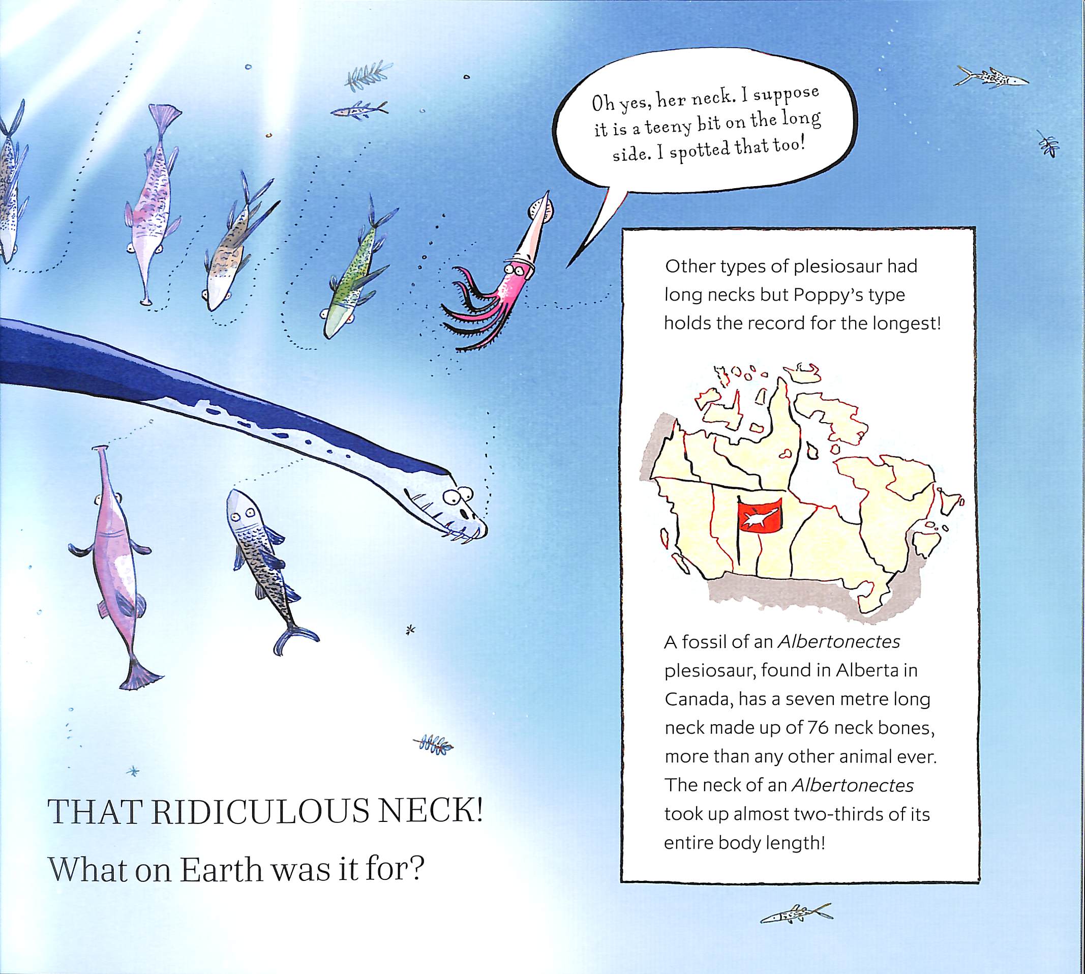 “There’s one thing about her that’s hard to ignore, THAT RIDICULOUS NECK!  What on Earth was it for?”Poppy the plesiosaur had a preposterously long neck – but what was it for?