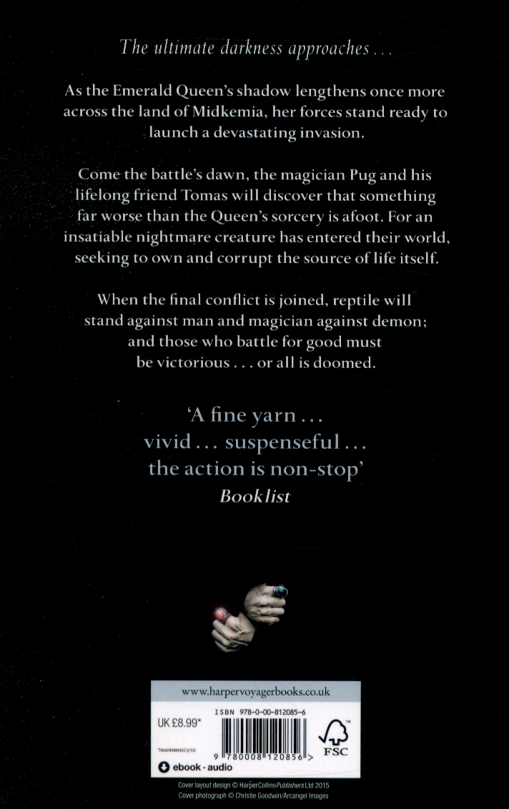 The third novel in the bestselling Serpentwar Saga. The ultimate darkness approaches . . . As the Emerald Queen’s shadow lengthens once more across the land of Midkemia, her forces stand ready to launch a devastating invasion. Come the battle’s dawn, the magician Pug and his life-long friend Tomas will discover that something far worse than the Queen’s sorcery is afoot.
