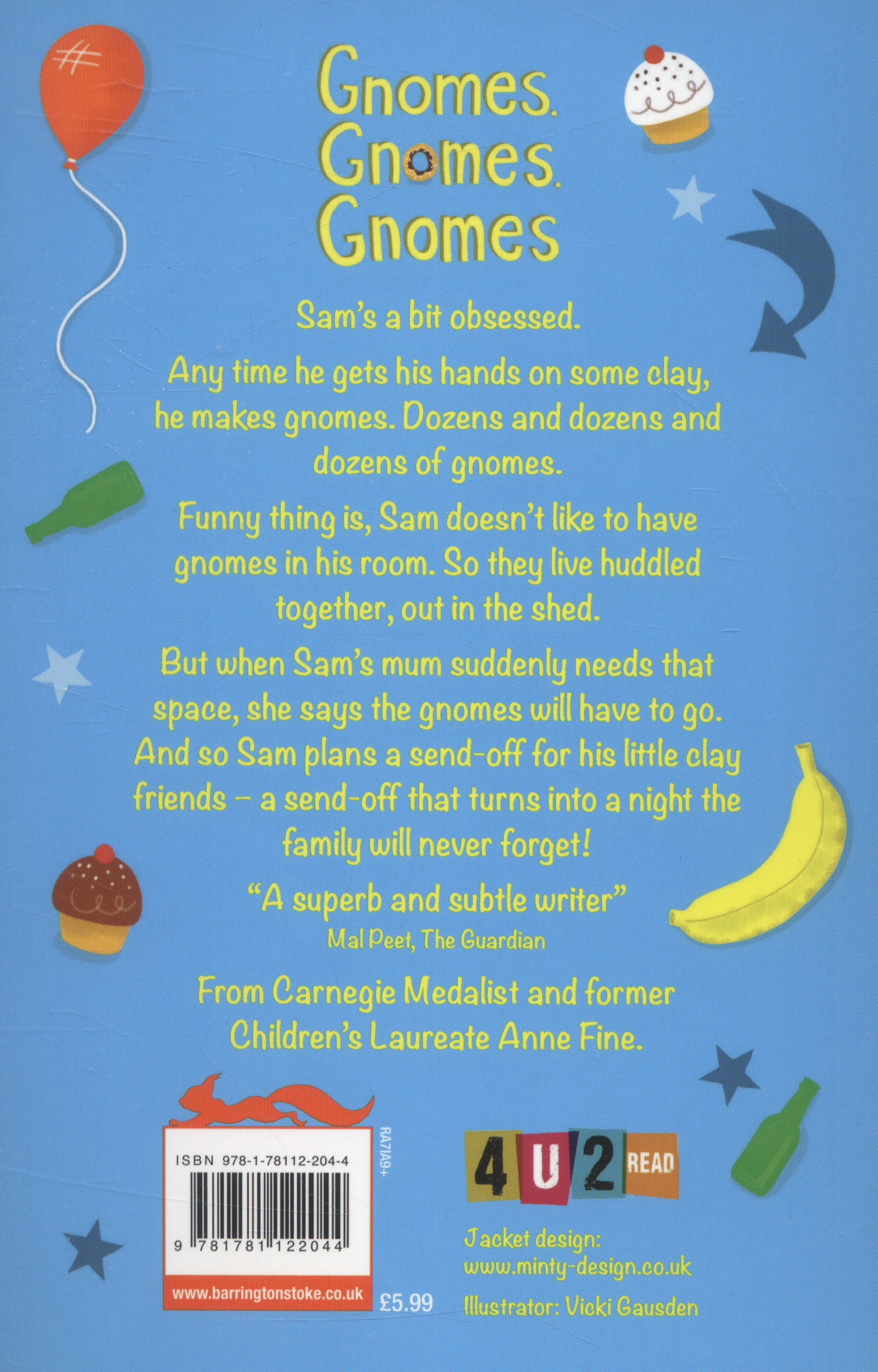 But when Sam's mum suddenly needs that space, she says the gnomes will have to go. And so Sam plans a send-off for his little clay friends – a send-off that turns into a night the family will never forget! Particularly suitable for readers aged 9+ with a reading age of 7.