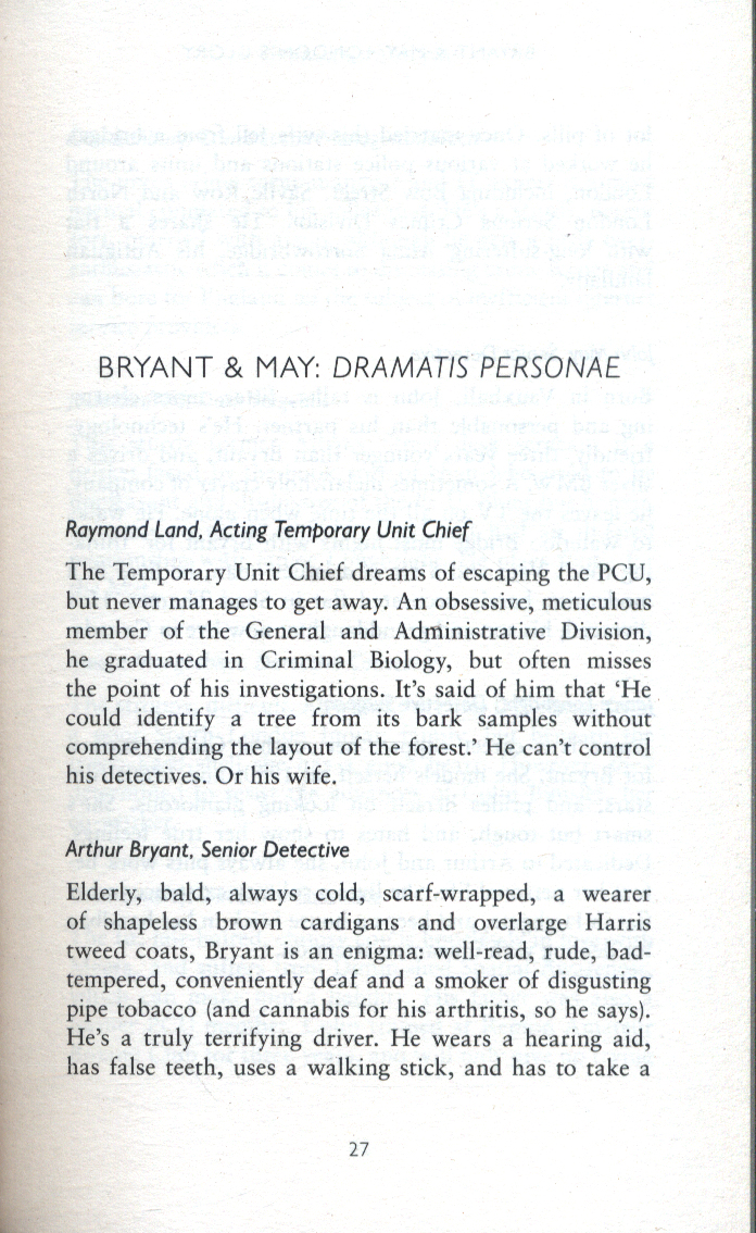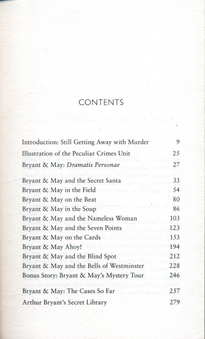 In every detective’s life there are cases that can’t be discussed, and throughout the Bryant & May novels there have been mentions of some of these such as the Deptford Demon or the Little Italy Whelk Smuggling Scandal. Now Arthur Bryant has decided to open the files on eleven of these previously unseen investigations that required the collective genius and unique modus operandi of Arthur Bryant and John May and the Peculiar Crimes Unit - investigations that range from different times (London during the Great Smog) and a variety of places: a circus freak show, on board a London Tour Bus and even a yacht off the coast of Turkey. And in addition to these eleven classic cases, readers are also given a privileged look inside the Peculiar Crimes Unit (literally, with a cut away drawing of their offices), a guide to the characters of the Peculiar Crimes Unit, and access to the contents of Arthur Bryant’s highly individual library.