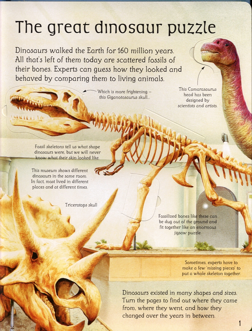 Flaps reveal extra facts, information and surprises. Chapters in this book include:- The great dinosaur puzzle- Life begins... - Dawn of the dinosaurs- Giant footsteps- Strange decorations- Fearsome battles- Where did they all go?- Dinosaurs today- Who's who