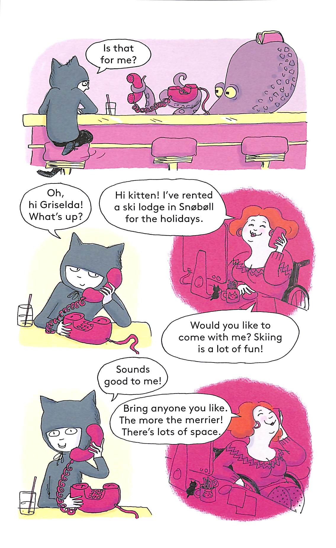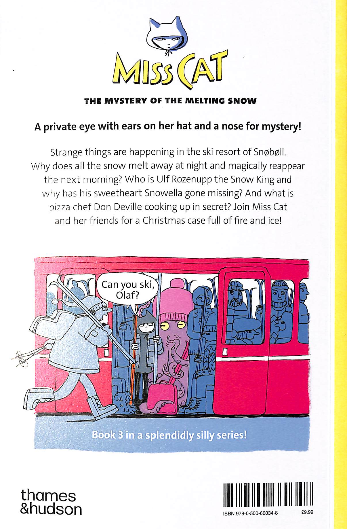 A private eye with ears on her hat and a nose for mystery, Miss Cat is back to solve another wild and wacky whodunnit about a ski resort where the snow melts at night and magically reappears in the morning. Miss Cat is not your typical private detective. Whether it’s her unique fashion sense or her uncanny ability to crack mind-bending mysteries, Miss Cat never turns down a chance to solve a crime and unmask the perpetrators. In this new Miss Cat adventure, strange things are happening in the ski resort of Snoboll.
