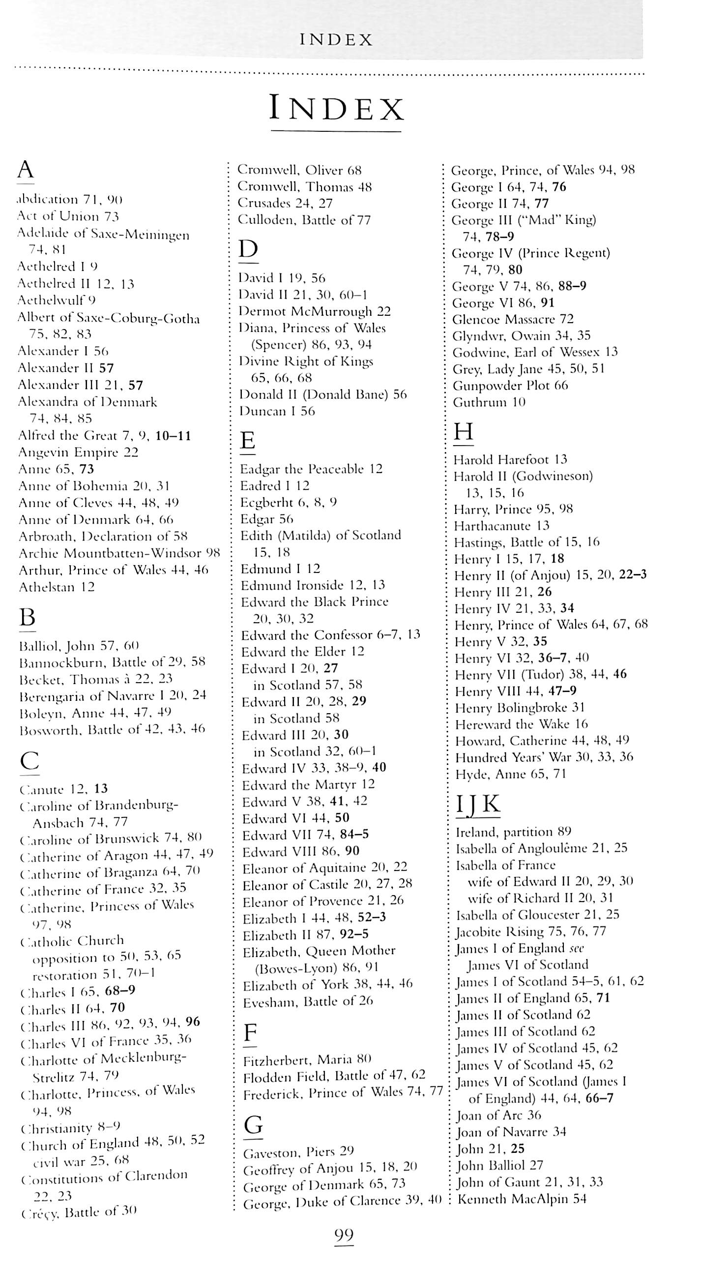 Year-by-year chronologies reveal the major events of each monarch's reign, while family trees trace the royal lineage and claim to the throne of each royal house.