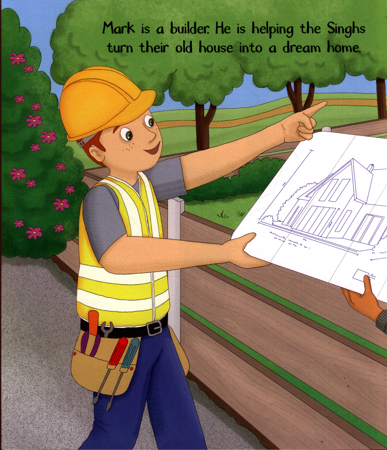 Step inside the life of Mark the Builder, as he helps the Singhs build their new home, in this title from the Busy People series. Mark is helping the Singhs turn their old house into their new dream home!
