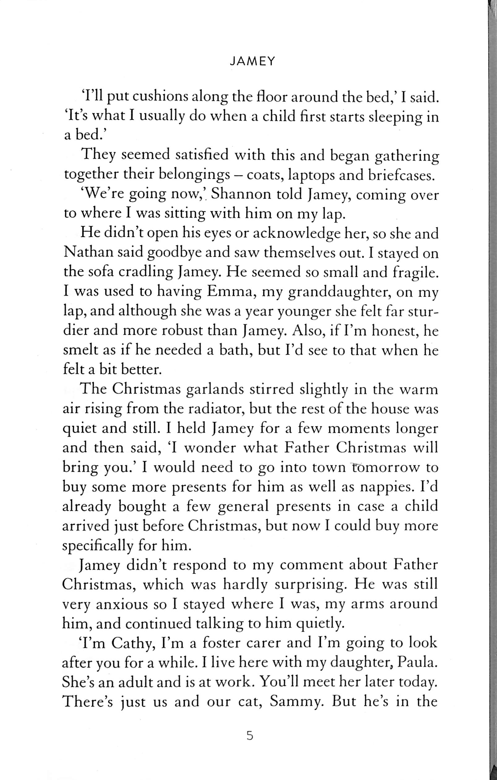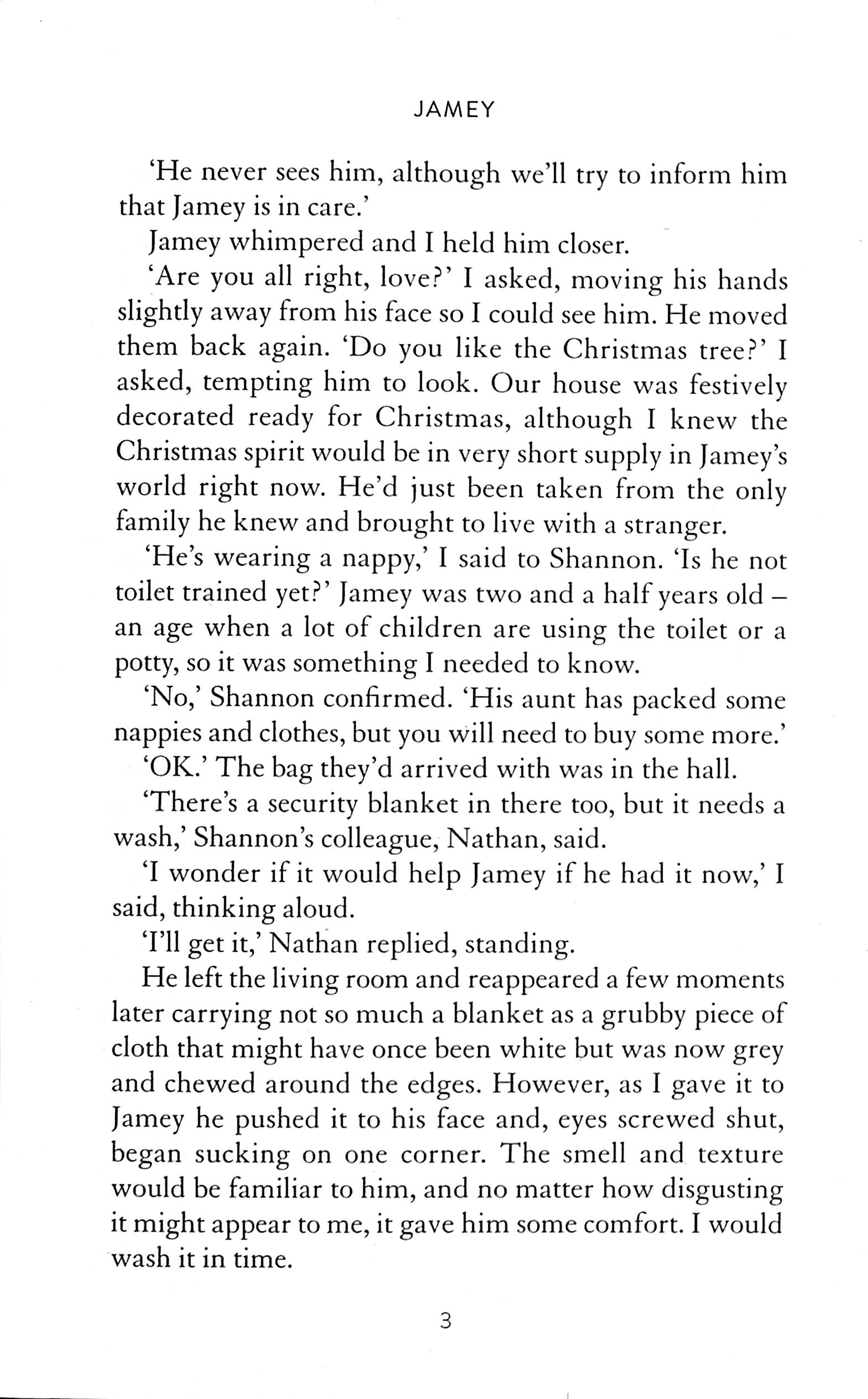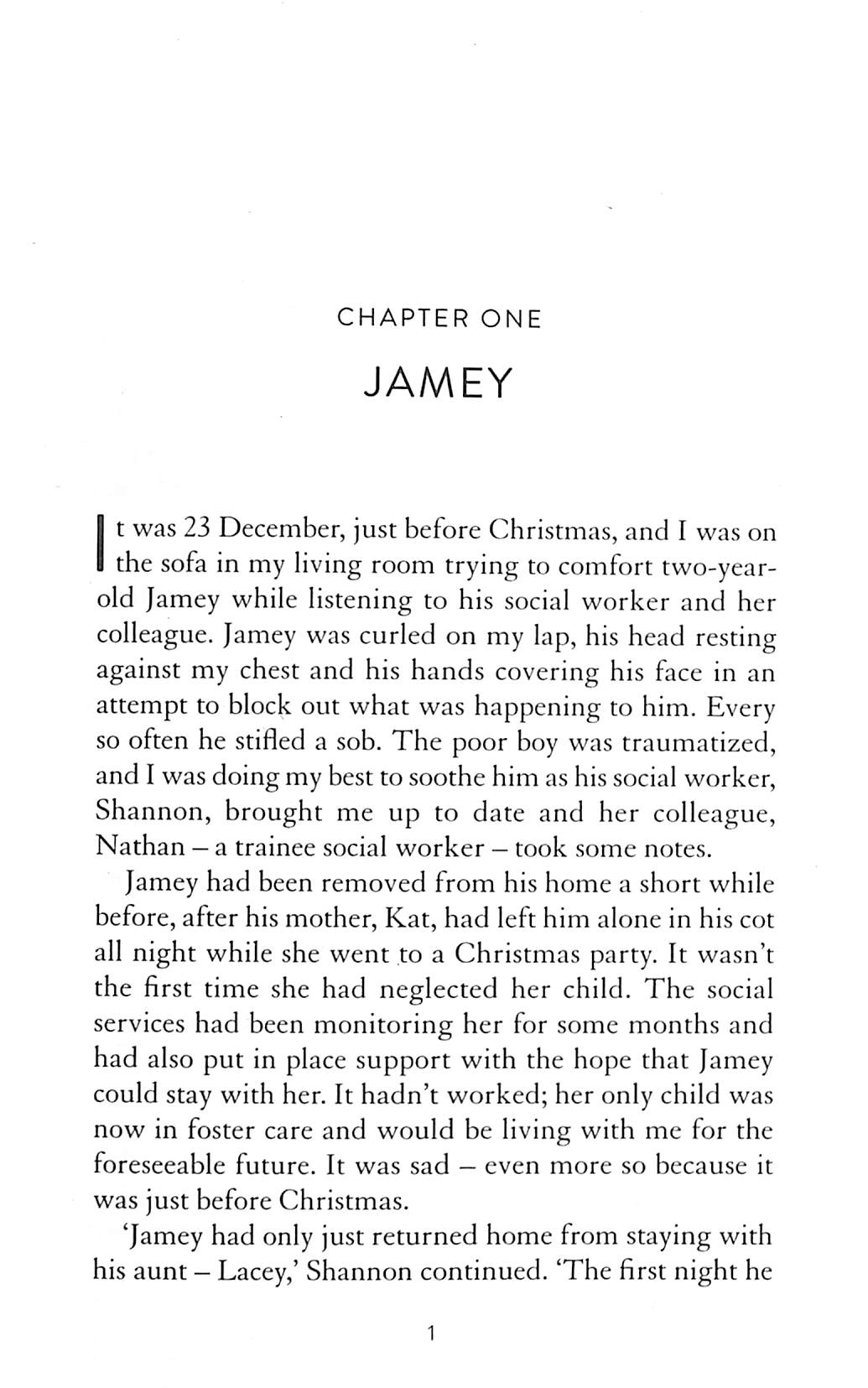Little Jamey, 2½ years old, is placed with experienced foster carer, Cathy Glass, as an emergency. The police and social services have no choice but to remove two-year-old Jamey from home after his mother leaves him alone all night to go out partying. When he first arrives with foster carer Cathy Glass, he is scared, hungry and withdrawn, craving the affection he has been denied for so long.