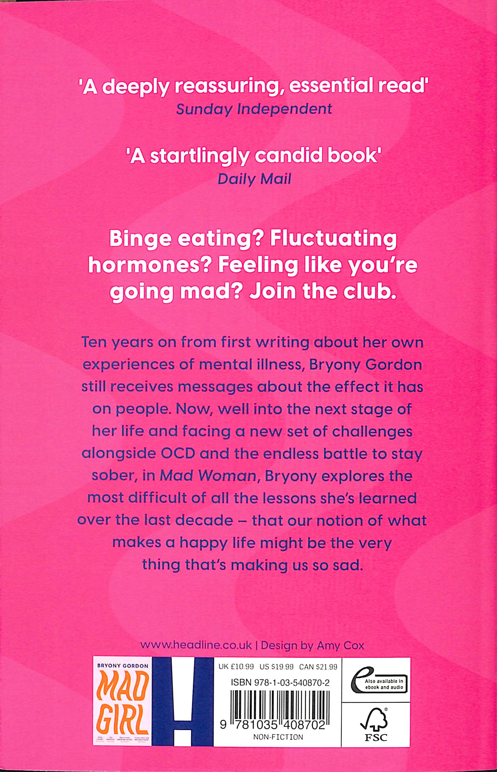 Her writing has helped me before and this will be another hit' Matt Haig'A startlingly candid book' Daily Mail'Gordon injects lightness into the darkness as she recounts her relapse into OCD and subsequent steps to recovery' Red Magazine*Bryony Gordon's Mad Woman was a Sunday Times bestseller on 18th Feb 2024. *Bryony Gordon's Mad Girl was a number one Sunday Times bestseller on 12th June 2016.