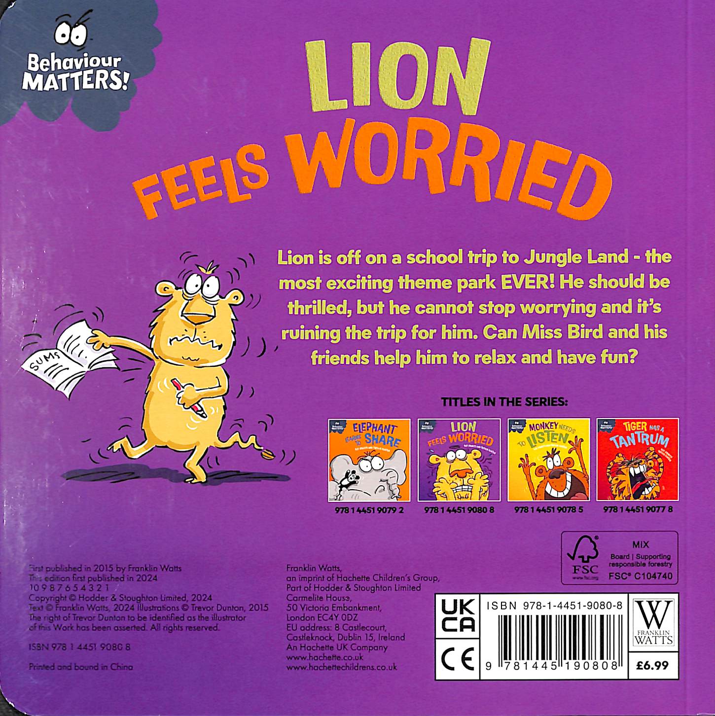 Can Miss Bird and his friends help him to relax and have fun?The Behaviour Matters series is perfect for sharing with children as a gentle means of discussing their emotions, boosting self-esteem and reinforcing good behaviour.