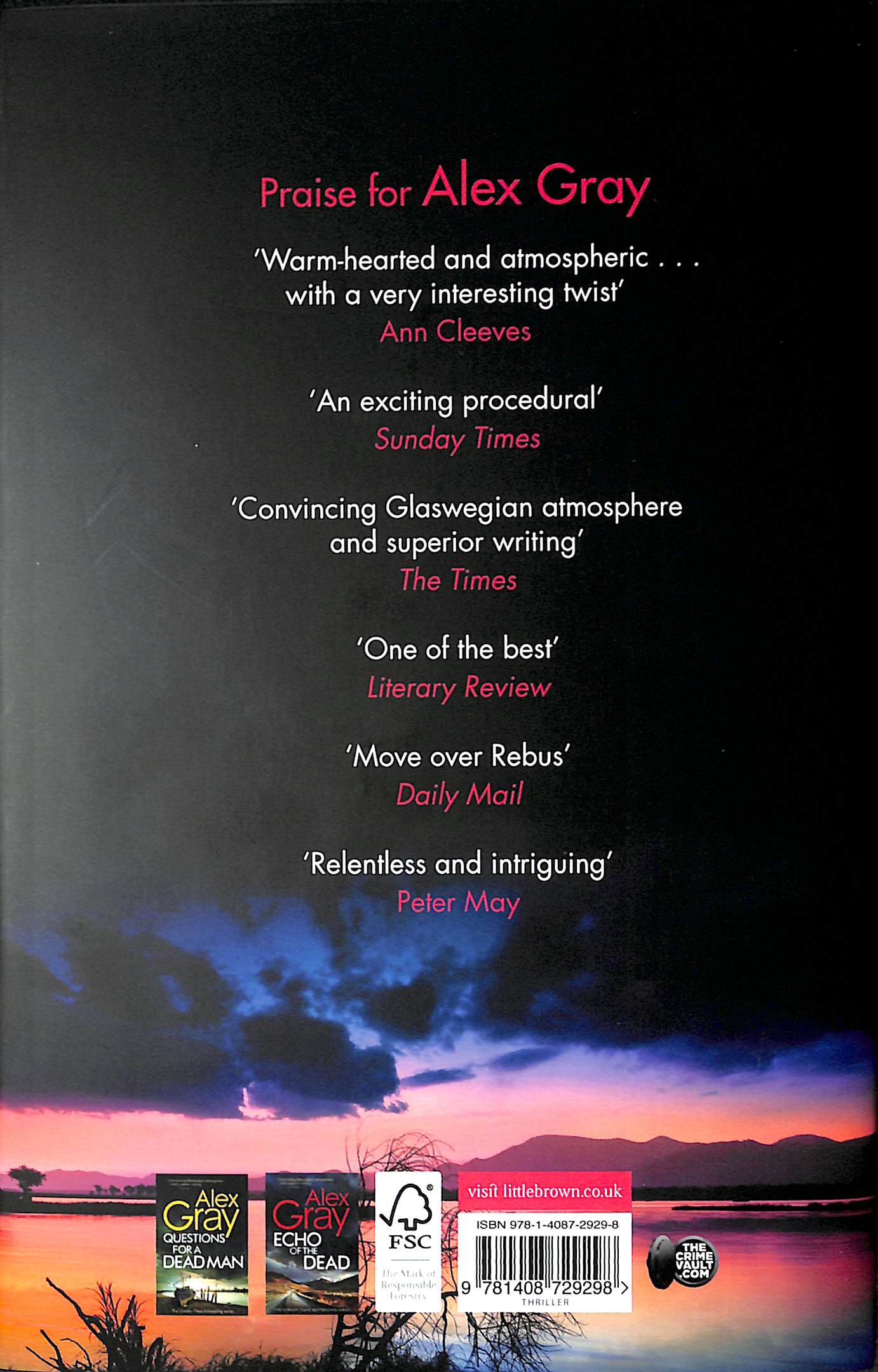 Rumours which could place the Lorimers in unimaginable peril. __________ 'One of the best is Alex Gray' LITERARY REVIEW'Immensely exciting and atmospheric' ALEXANDER MCCALL SMITH'Move over Rebus' DAILY MAIL'Relentless and intriguing' PETER MAY