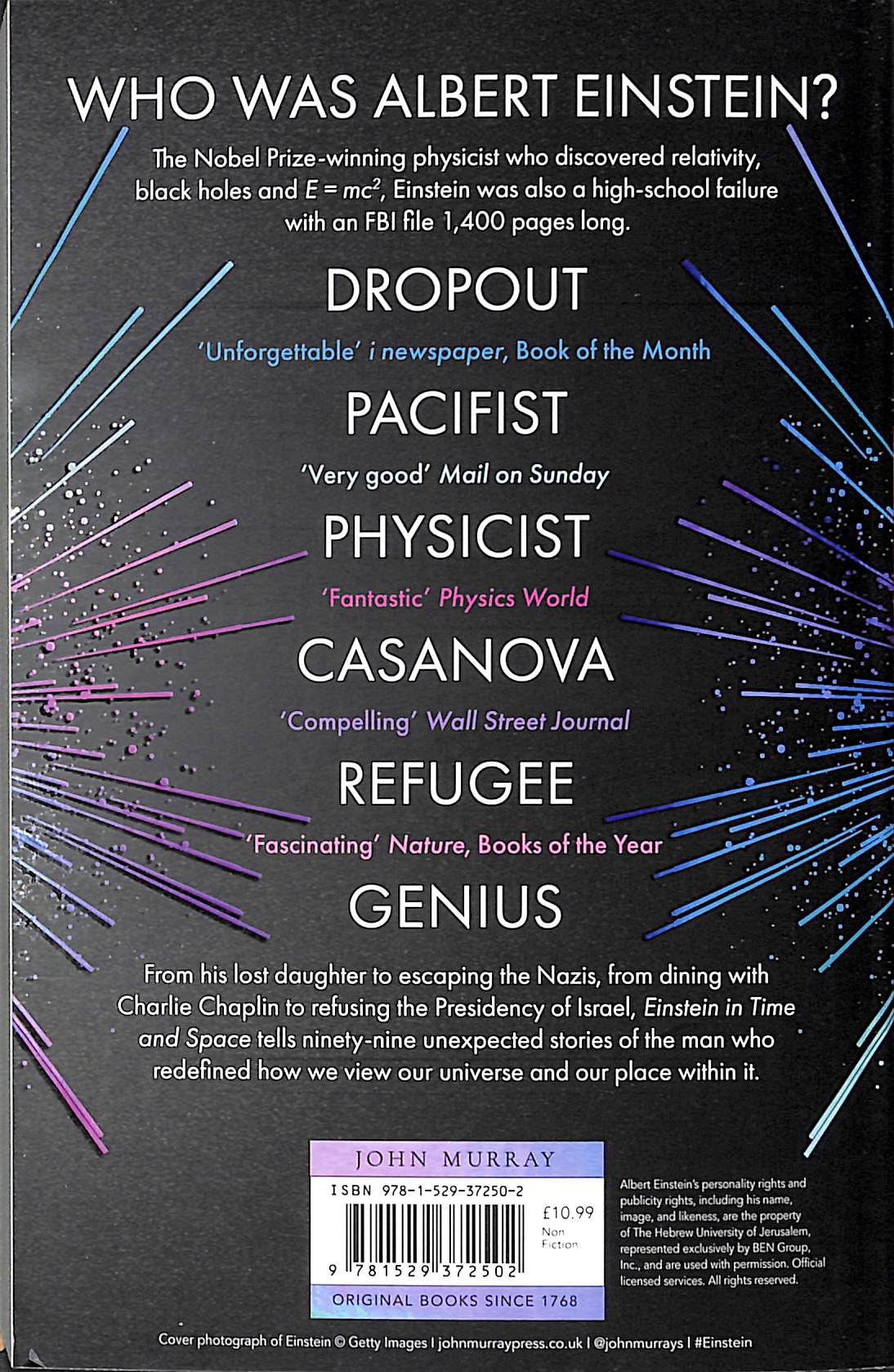 'Fascinating and vivid' CARLO ROVELLIDROPOUT, PACIFIST, PHYSICIST, CASANOVA, REFUGEE, GENIUS . . . WHO WAS ALBERT EINSTEIN?The Nobel Prize-winning physicist who discovered relativity, black holes and E = mc2, Einstein was also a high-school failure with an FBI file 1,400 pages long. From his lost daughter to escaping the Nazis, from dining with Charlie Chaplin to refusing the Presidency of Israel, Einstein in Time and Space tells 99 unexpected stories of the man who redefined how we view our universe and our place within it. 'Unforgettable' the i, Book of the Month'Compelling' Wall Street Journal