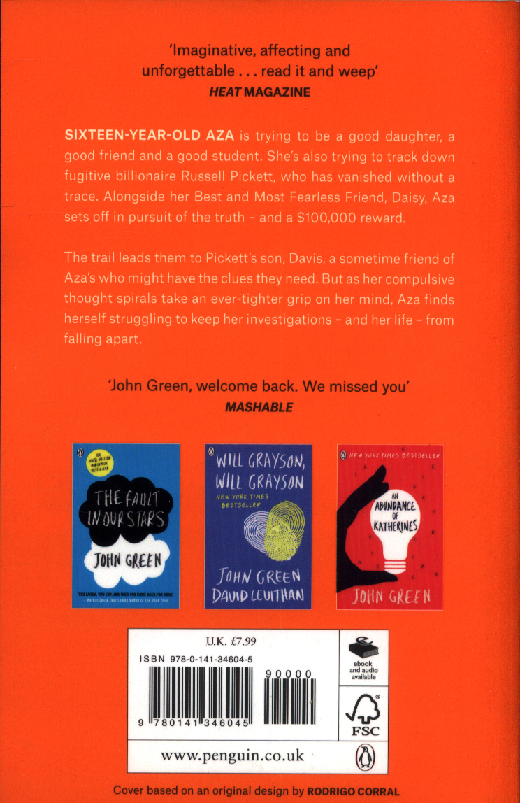 A perfect coming-of-age novel filled with love, mystery and Star Wars fan-fiction. 'John Green writes from the heart'- The Times __________ In his long-awaited return John Green, the acclaimed author of the Fault in Our Stars, shares Aza's story with shattering, unflinching clarity in this brilliant novel about mental health, love, resilience, and the power of lifelong friendship. 'A gripping story that cuts to the heart of friendship and first love' The Scotsman 'Acknowledging the difficulties of loving someone with a chronic mental illness is both ethically noble, and, with this novel, skilfully done.' Claire Hennessy, Irish Times 'The friendships in Green's novels are stirring and powerful.' The New York Times