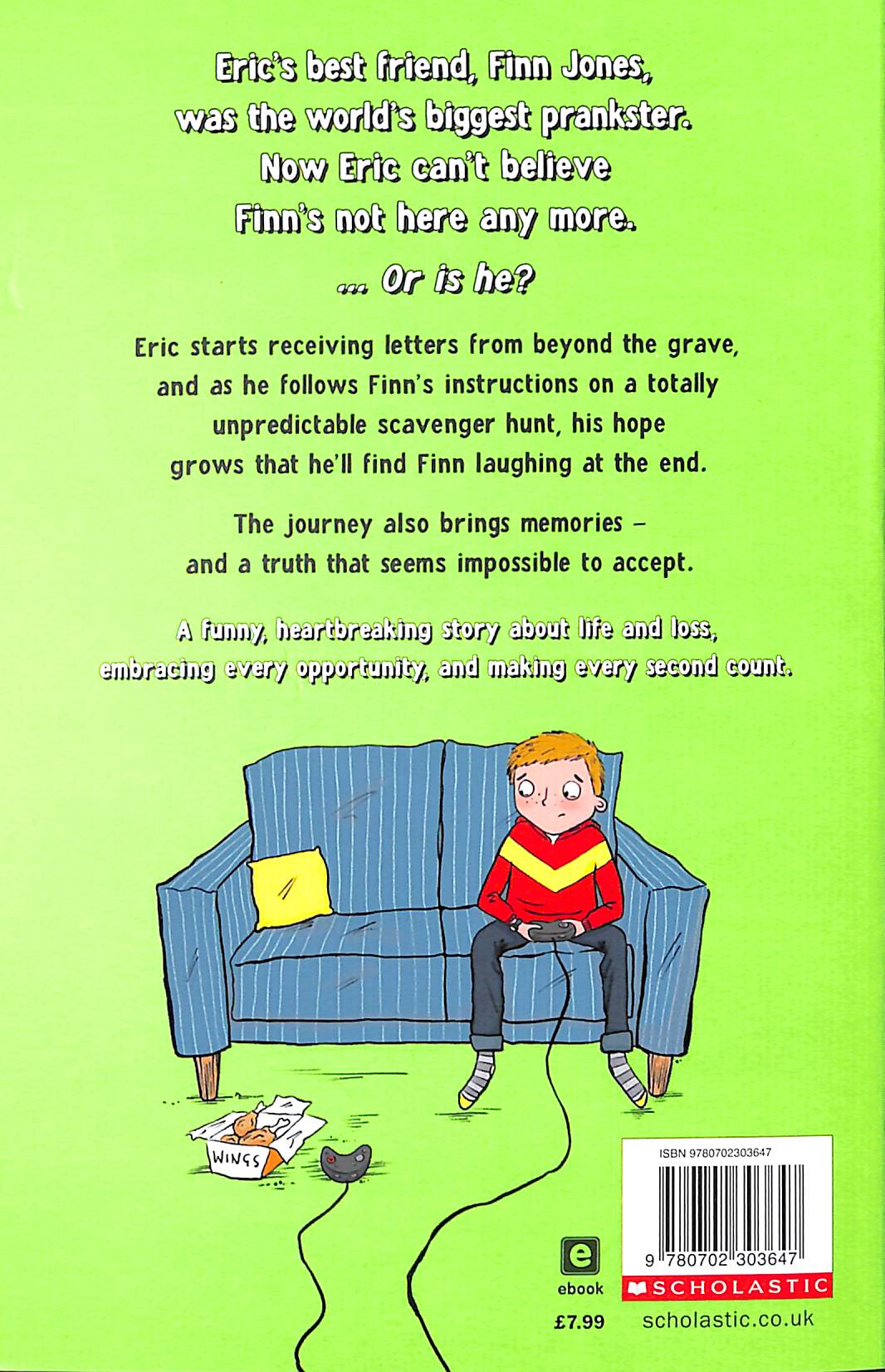 One of Sunday Times' best children's books for summer 2023 Endorsed by Child Bereavement UK A funny, heartbreaking story about life and loss, and making every second count. Eric's best friend, Finn Jones, was the world's biggest prankster. Now Eric can't believe Finn's not here anymore. ...Or is he? Eric seems to be getting messages from beyond the grave, and as he follows Finn's wild, cryptic instructions, his hope grows that he'll find Finn laughing at the end. The journey also brings memories - and a truth that seems impossible to accept. Simon James Green is the award-winning author of books like Sleepover Takeover and The Life of Riley: Beginner's Luck, which was shortlisted for the Blue Peter Book Prize. This story blends hilarity with heart, perfect for fans of books by Helen Rutter, Frank Cottrell-Boyce, Ben Bailey Smith and Ross Welford. Hilarious illustrations throughout by Jennifer Jamieson   PRAISE FOR SIMON'S MIDDLE-GRADE BOOKS Sleepover Takeover "This is a fantastically funny, exciting, unexpected, and sometimes touching, mystery thriller" BookTrust "A funny madcap mystery adventure perfect for fans of Danny Wallace's THE DAY THE SCREENS WENT BLANK or Charlie Higson's WORST. HOLIDAY. EVER." LoveReading 4 Kids Life Of Riley: Beginner's Luck "This funny, gentle story is packed with snappy humour and hilarious characters." BookTrust "Though the laughs are sustained from start to finish, there is some depth to the drama in Life of Riley, too.