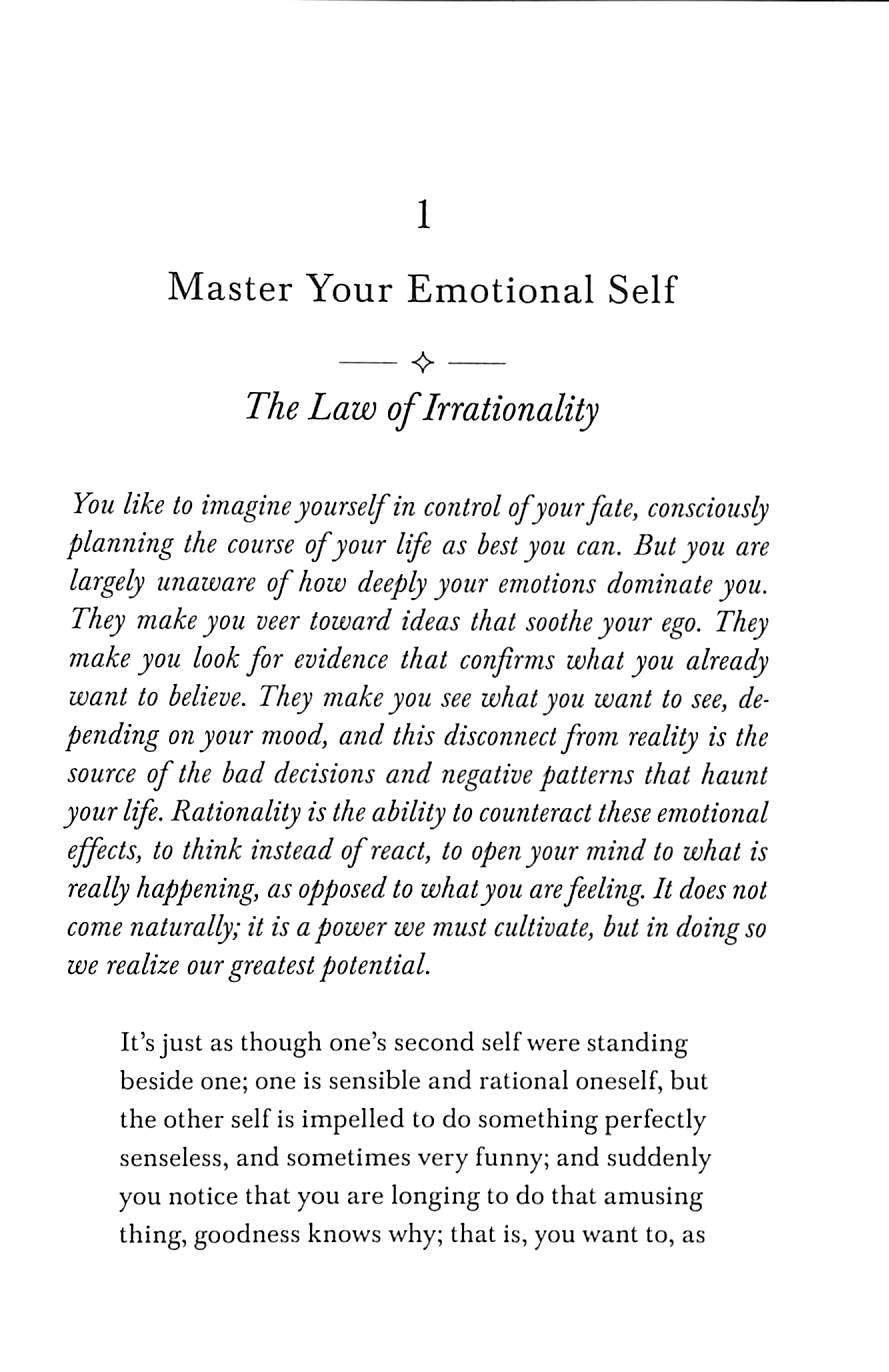 Drawing from the ideas and examples of Pericles, Queen Elizabeth I, Martin Luther King Jr, and many others, Greene teaches us how to detach ourselves from our own emotions and master self-control, how to develop the empathy that leads to insight, how to look behind people's masks, and how to resist conformity to develop your singular sense of purpose.