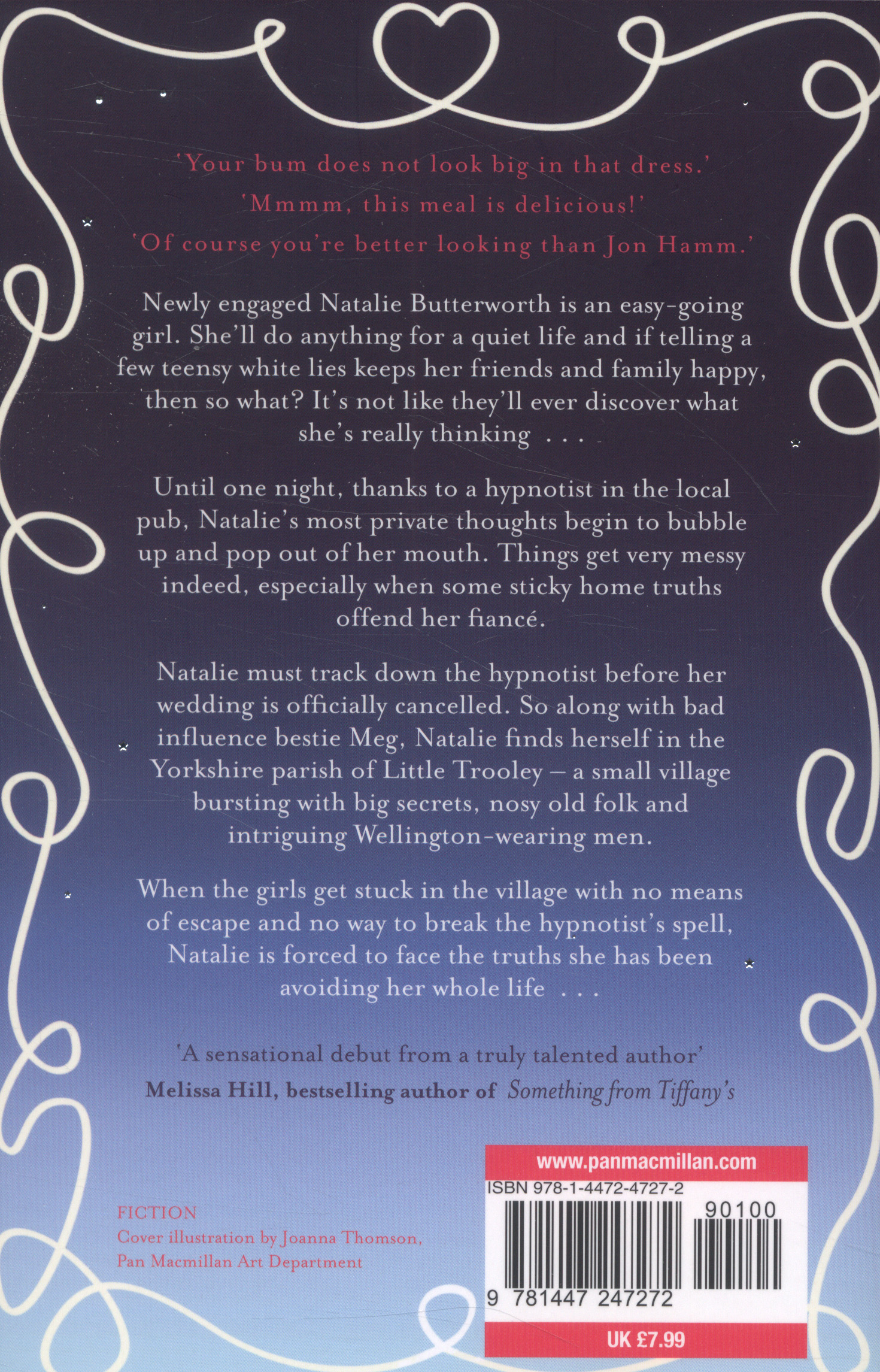 So along with bad influence bestie Meg, Natalie finds herself in the Yorkshire Parish of Little Trooley - a small village bursting with big secrets, nosy old folk and intriguing Wellington-wearing men. When the girls get stuck in the village with no means of escape and no way to break the hypnotist's spell, Natalie is forced to face the truths she has been avoiding her whole life ... This is a sparkling romantic comedy debut novel, written by the very talented founder of women's fiction review site novelicious.com, and noveliciousbooks.com, Kirsty Greenwood.