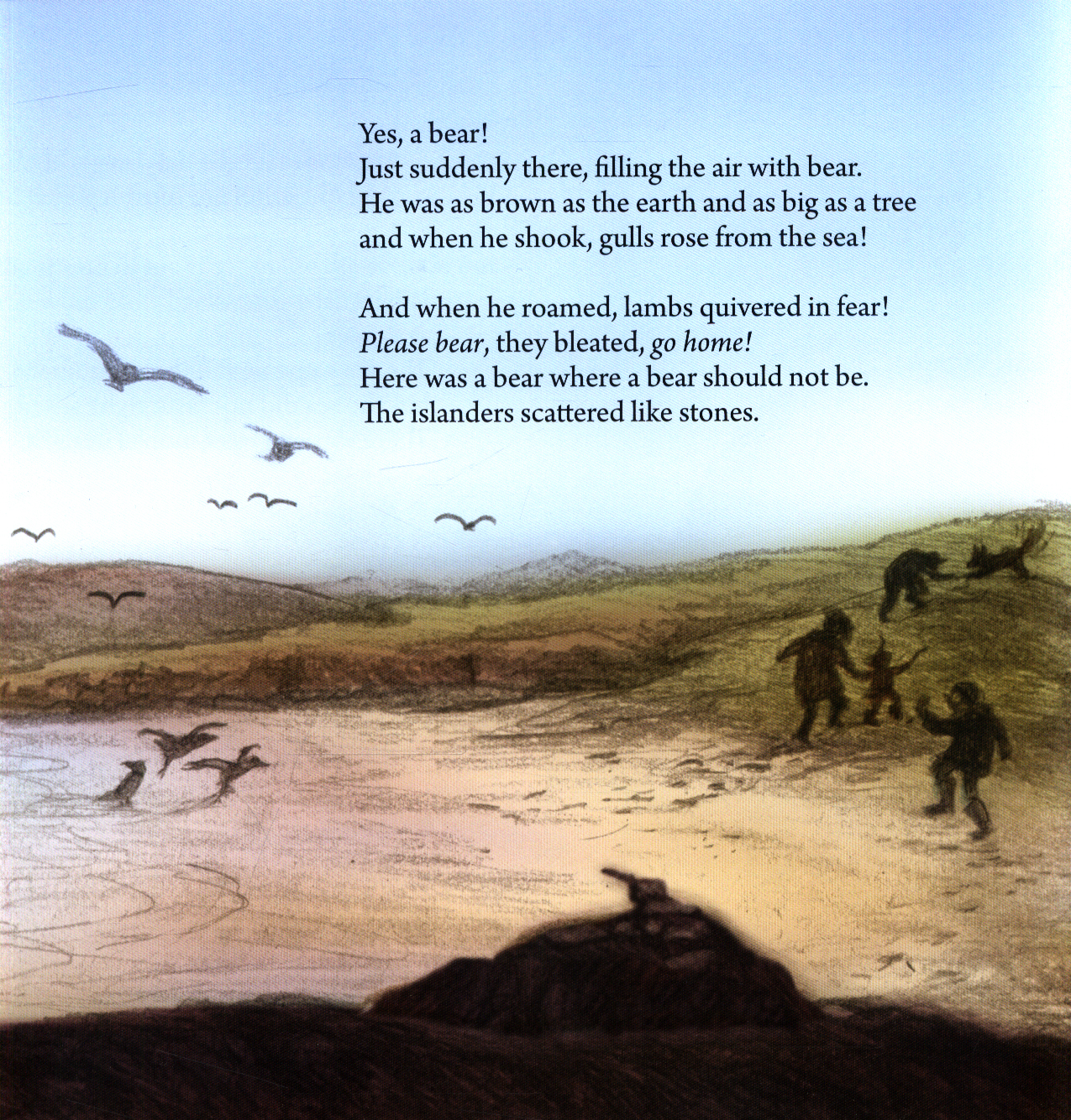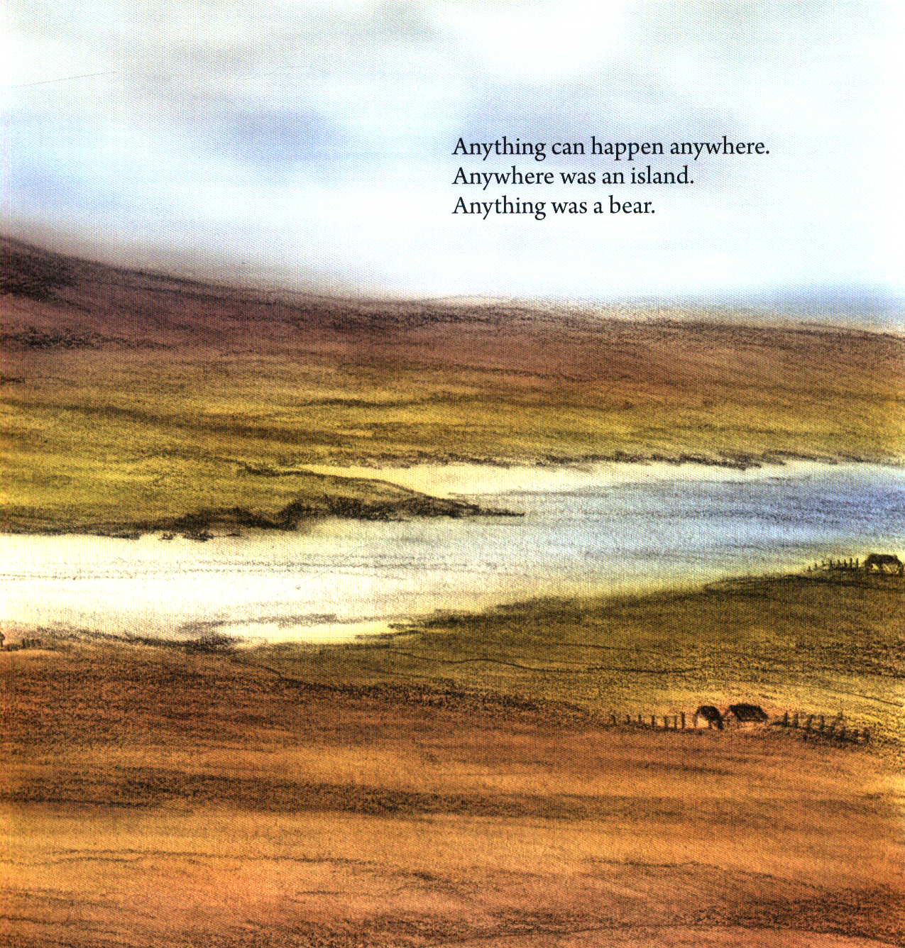 "Anything can happen anywhere. Anywhere was an island. Anything was a bear."One windy morning on a wild and quiet Hebridean island, a bear appeared where there should not have been a bear. The gentle giant played happily in streams, danced in the wind, and would not harm a living thing.