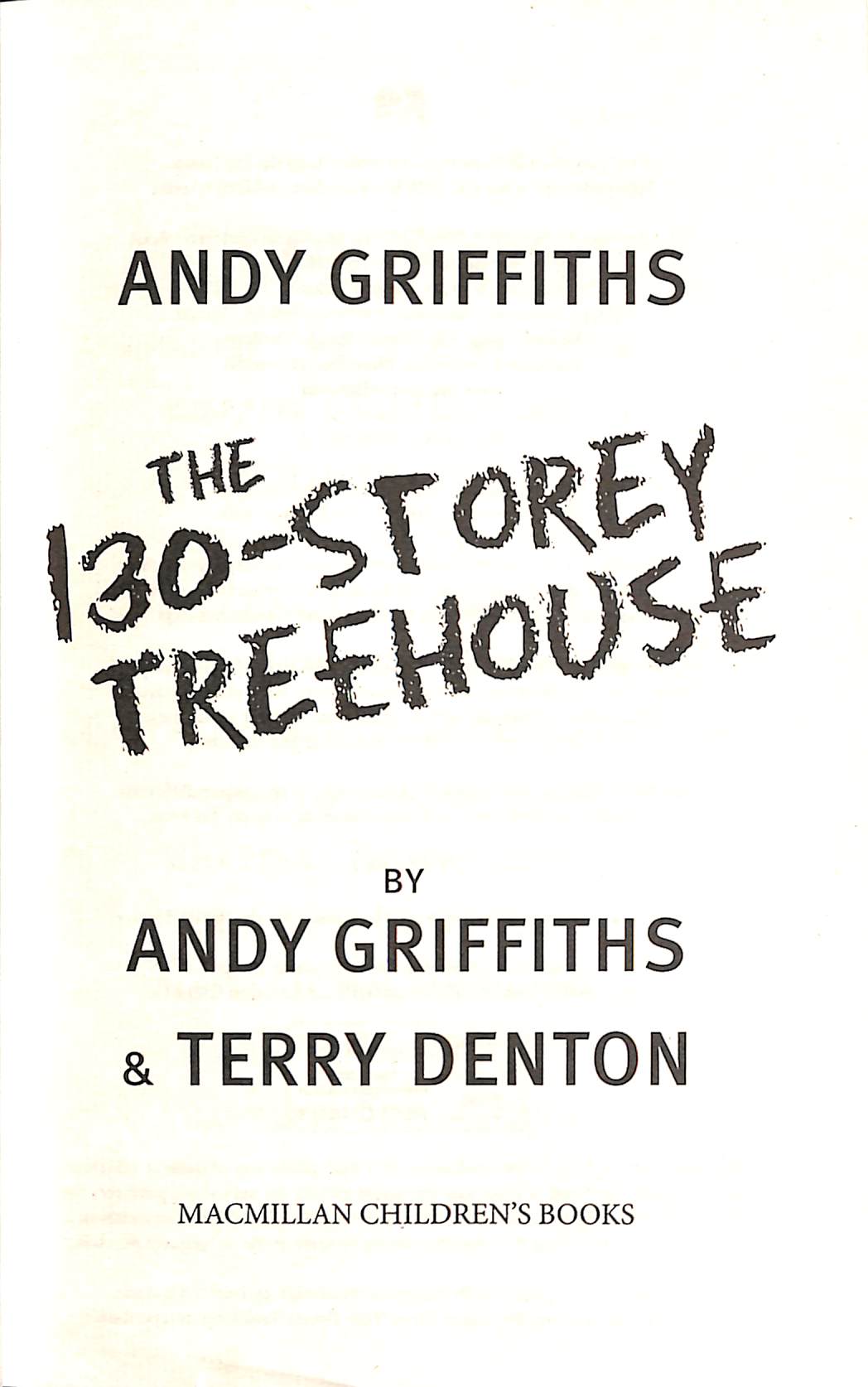 The 130-Storey Treehouse is the tenth book of Andy Griffiths and Terry Denton's wacky treehouse adventures, where the laugh-out-loud story is told through a combination of text and fantastic comic book-style illustrations'The kind of book I would have loved as a kid' – Tom Fletcher, author of The Danger GangWe've added 13 new levels to our treehouse – it used to be 117 storeys, but it keeps on growing!Now there's a soap bubble blaster, a GRABINATOR (it can grab anything from anywhere at any time), a time-wasting level, a toilet paper factory (because you can never have too much toilet paper) and an extraterrestrial observation centre . . . which will come in handy when giant flying eyeballs from outer space come to grabinate us!Well, what are you waiting for?
