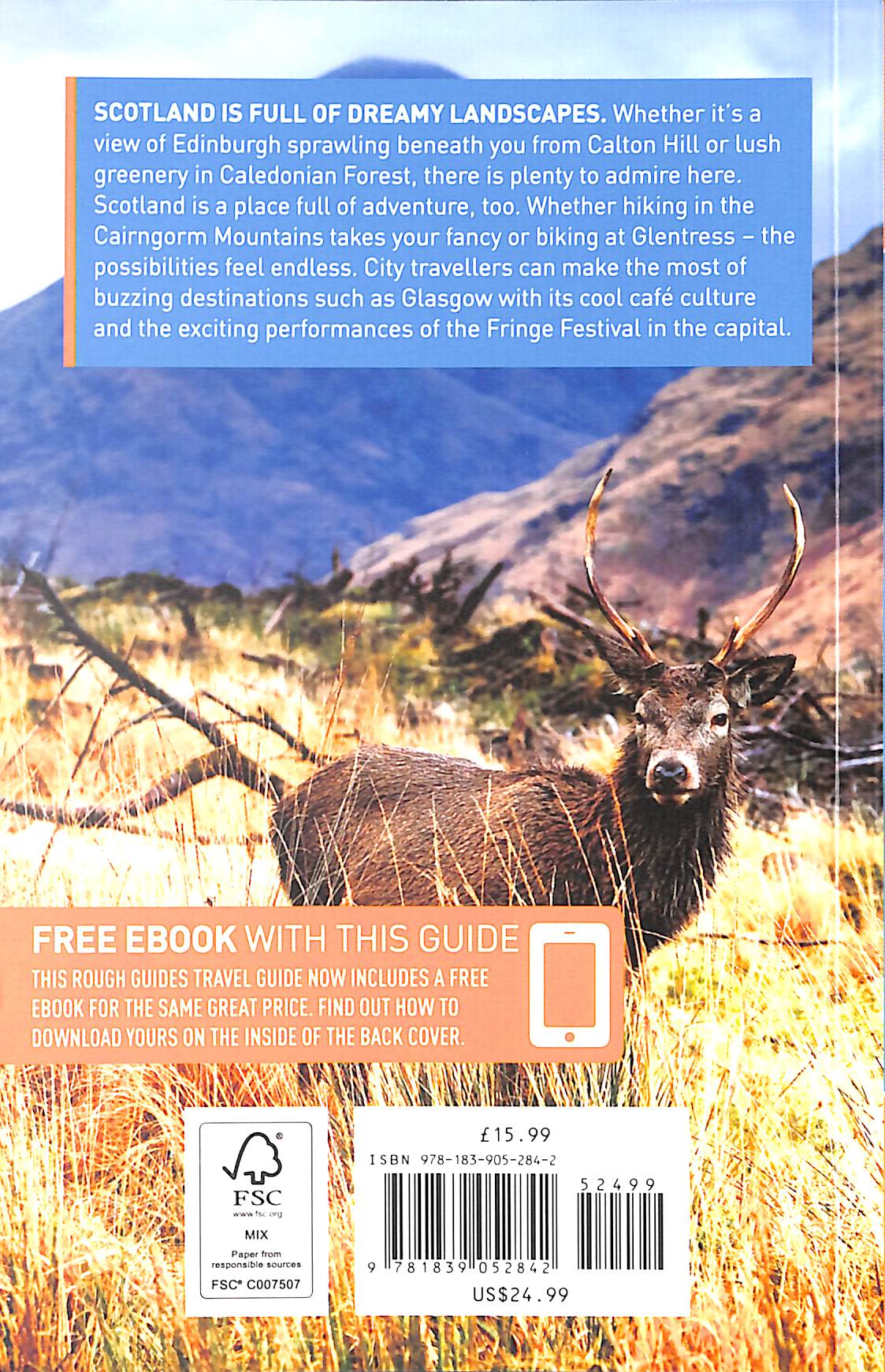 HIGHLIGHTS OF THINGS NOT TO MISSRough Guides' rundown of The Western Isles, Northeast Scotland and Shetland's best sights and top experiences helps to make the most of each trip to Scotland, even in a short time. HONEST AND INDEPENDENT REVIEWSWritten by Rough Guides' expert authors with a trademark blend of humour, honesty and expertise, to help to find the best places in Scotland, matching different needs. BACKGROUND INFORMATIONComprehensive 'Contexts' chapter features fascinating insights into Scotland, with coverage of history, religion, ethnic groups, environment, wildlife and books, plus a handy language section and glossary. FABULOUS FULL COLOUR PHOTOGRAPHYFeatures inspirational colour photography, including the stunning Loch Ness and the spectacular Cuillin Range. COLOUR-CODED MAPPINGPractical full-colour maps, with clearly numbered, colour-coded keys for quick orientation in Glasgow, Aberdeen and many more locations in Scotland, reduce the need to go online. USER-FRIENDLY LAYOUT With helpful icons, and organised by neighbourhood to help you pick the best spots to spend your time. FREE EBOOK Free eBook download with every purchase of a printed book allows you to access all of the content from your phone or tablet, for on-the-road exploration.