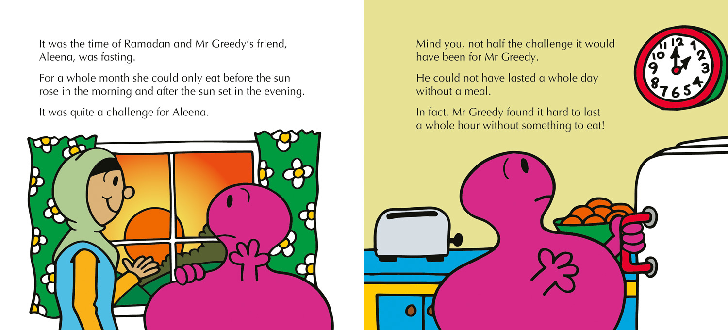 The perfect opportunity for Little Miss Splendid to wear her most splendid hat and for Mr Greedy to wear his biggest napkin! Mr Men and Little Miss Celebrations introduce children to all the exciting occasions that people celebrate including birthdays, Christmas, Halloween, Easter, Chinese New Year, Diwali and now Eid.