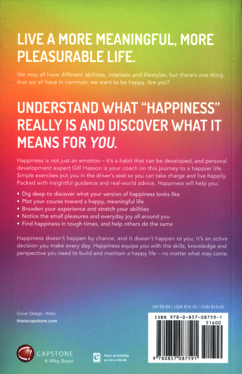 This book shows you that happiness is a skill made up of a particular set of habits that you can bring in your life starting today. Identify your own, personal definition of “happiness”Learn why we need to be happy and what often gets in the wayDevelop habits that help you create and maintain happiness long-termLearn how to be happy when you’re stuck in an unhappy situationDiscover the often-overlooked happiness that surrounds you every day While happiness is not feeling good all the time you do have the ability to control how you feel Happiness gives you the skills and perspective to recognise happiness and pursue a happy life—whatever that may mean for you.