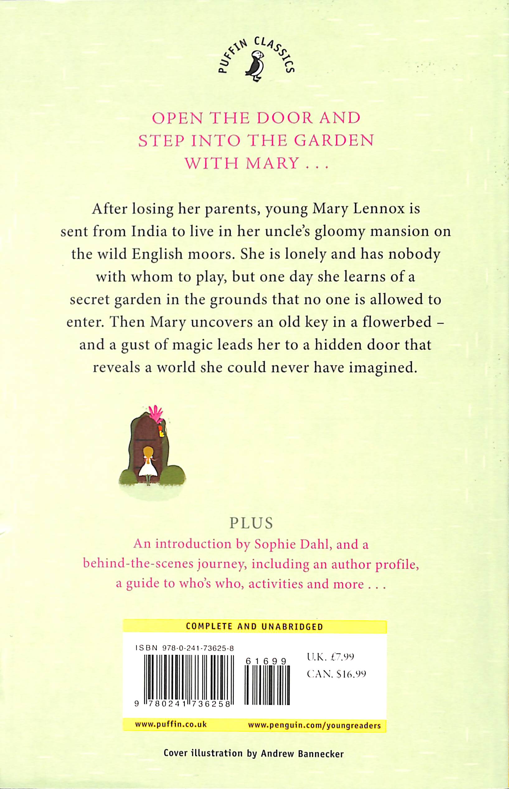 Rediscover the Puffin Classics collection and bring the best-loved classics to a new generation - including this magical edition of The Secret Garden. After losing her parents, young Mary Lennox is sent from India to live in her uncle's gloomy mansion on the wild English moors.