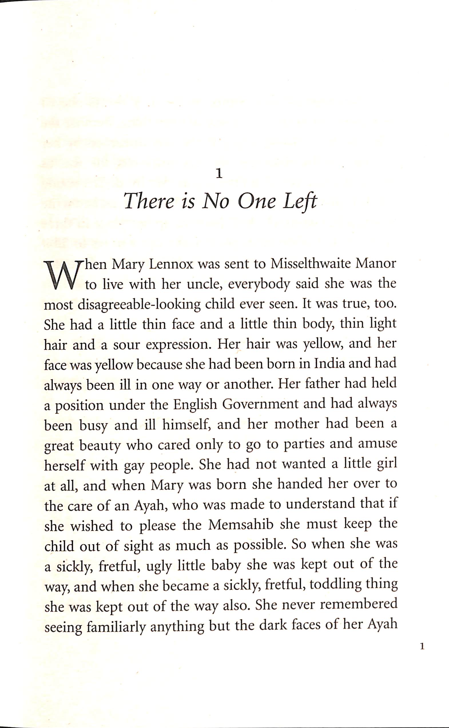 She is lonely and has no one to play with, but one day she learns of a secret garden hidden in the grounds that no one is allowed to enter.