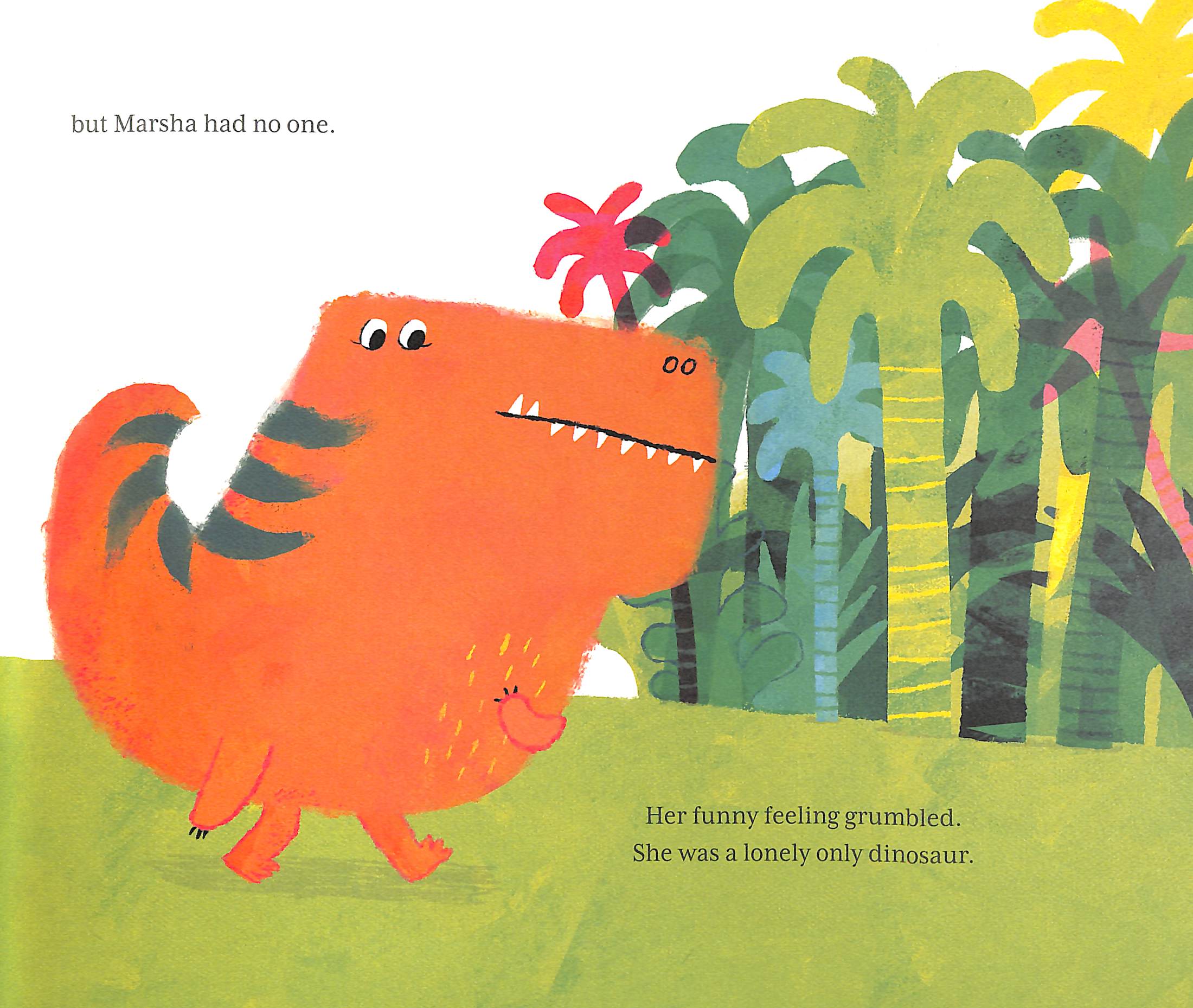 She loves it there, but one day she notices a very funny feeling – could she be ... lonely?When she spots a small scelidosaurus, Moss, on the opposite side of the swamp, she decides to make friends with him. But however hard she tries, Marsha just keeps scaring Moss away – will she be a lonely only dinosaur for ever?