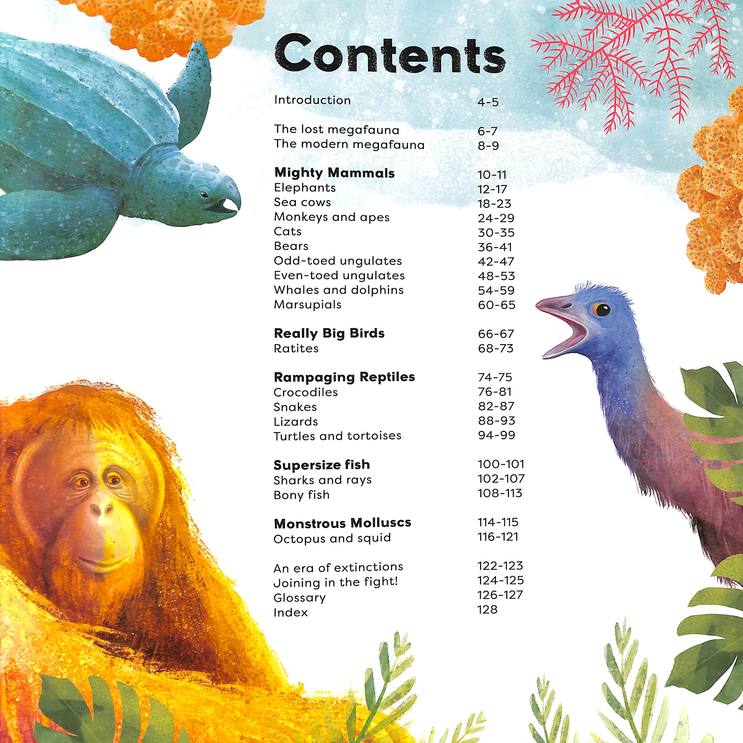 A fascinating celebration of the world's most enormous animals!Discover the magnificent megafauna that have shaped our planet - from the mighty megalodon, sabre-toothed cats and giant birds that existed millions of years ago, to the elephants, giraffes and whales that live today. But why did some of the largest creatures on Earth go extinct?