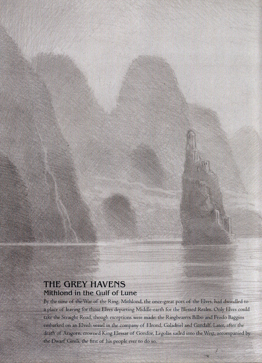 Events from Tolkien’s books are explored – battles of the different ages that are almost legend by the time of The Lord of the Rings; lost kingdoms and ancient myths, as well as those places only hinted at: kingdoms of the far North and lands beyond the seas. Sketches that have an ‘on-the-spot’ feel to them are interwoven with the artist’s observations gleaned from Tolkien’s books as he paints pictures with his words as well as his pencil.