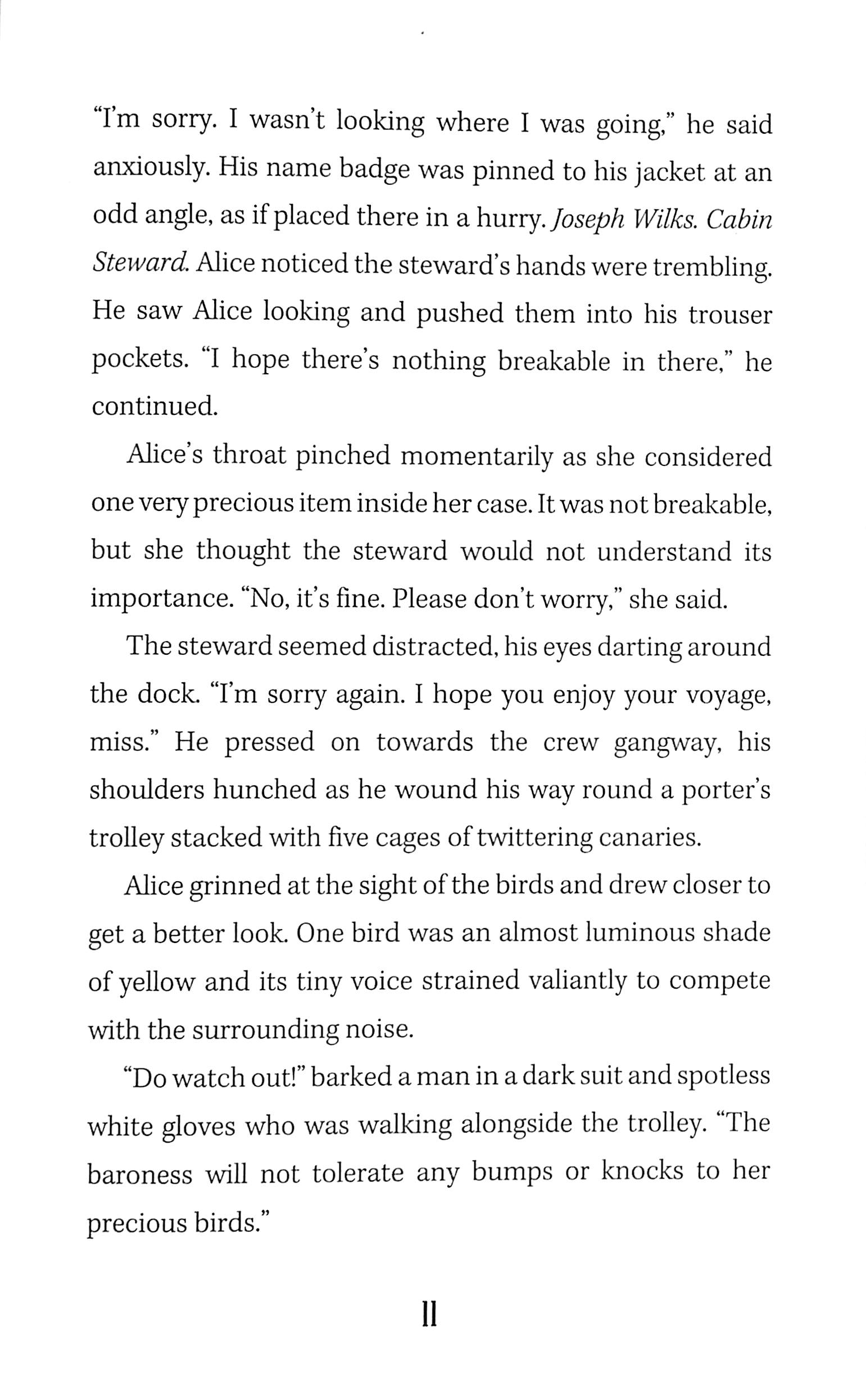 She's excited to explore the huge ship, with its shops, animals and even celebrities on board. But while Alice's sailor father focuses on winning a prestigious race, she witnesses a shocking attack.