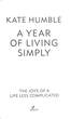 She has made me reassess and reset.' - DAN SNOW'Kate Humble's new book is a lesson in moving on from a tragedy and finding our place in the world' - WOMAN & HOME'A Year of Living Simply is timely, given that the pandemic has forced most of us, in some way to simplify our lives, whether we planned to or not.