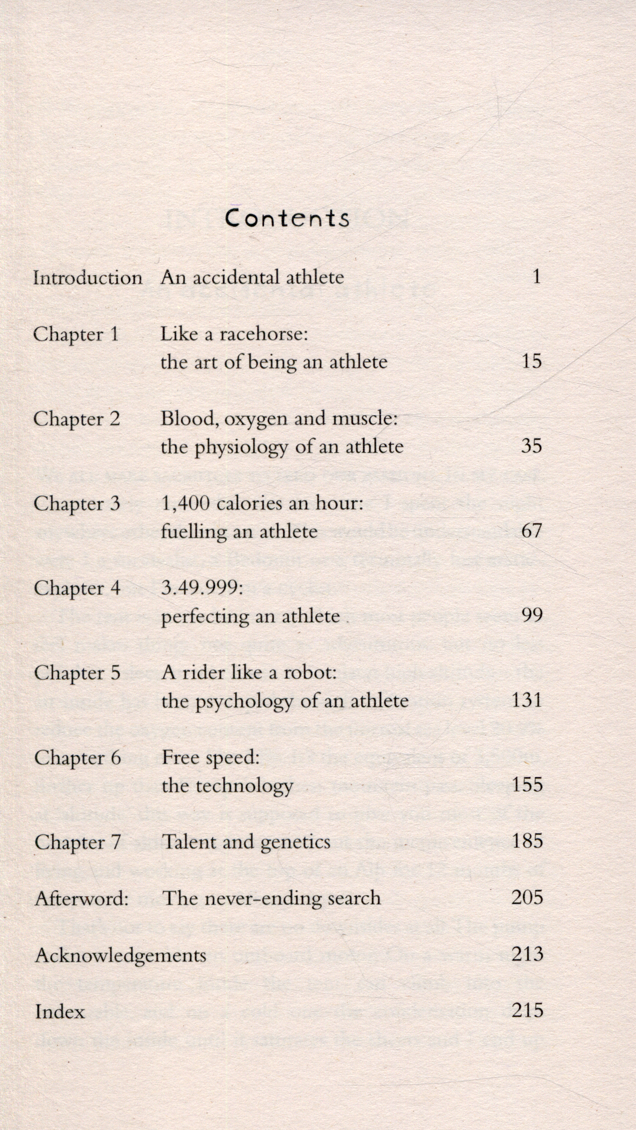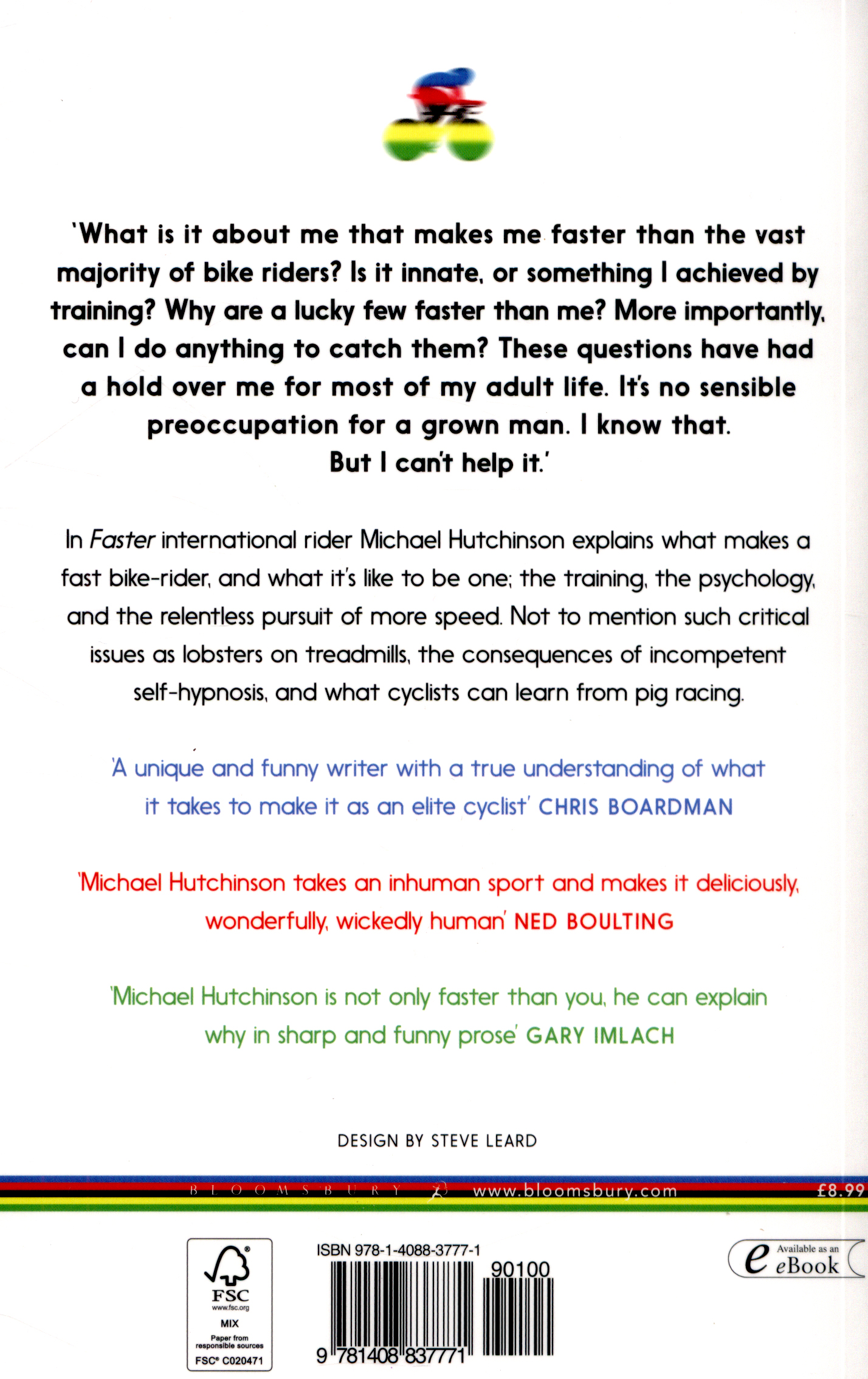 He looks at the things that make you slower, and why, and how attempts to avoid them can result in serious athletes gradually painting themselves into the most peculiar life-style corners. Faster is a book about why cyclists do what they do, about what the riders, their coaches and the boffins get up to behind the scenes, and about why the whole idea of going faster is such an appealing, universal instinct for all of us.