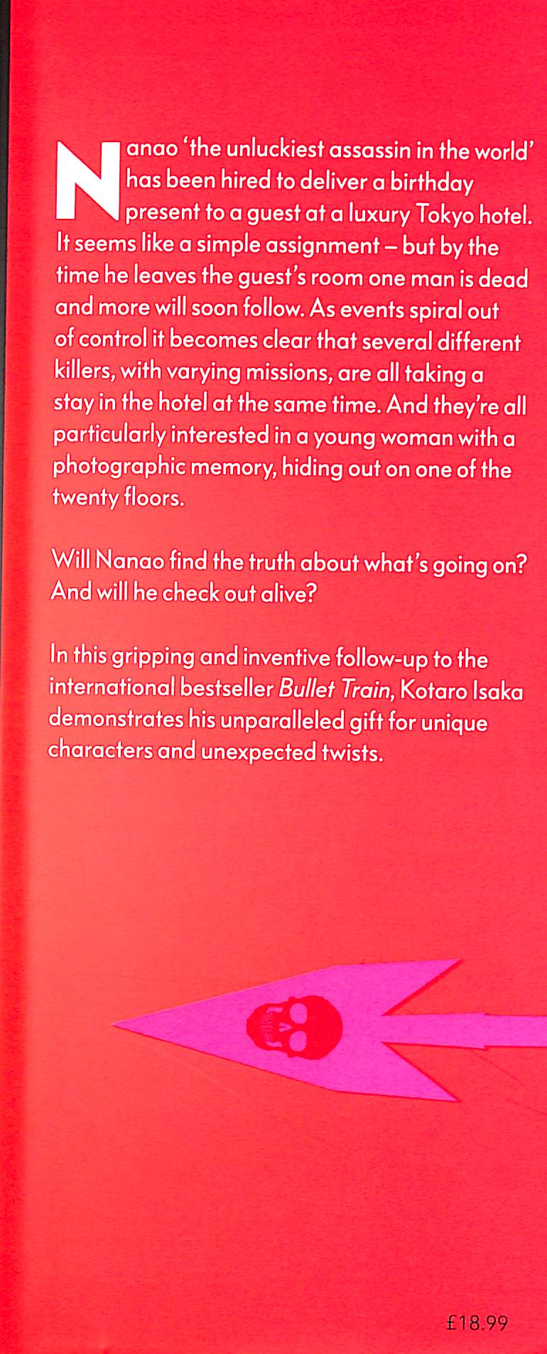 As events spiral out of control as it becomes clear several different killers, with varying missions, are all taking a stay in the hotel at the same time. And they're all particularly interested in a young woman with a photographic memory, hiding out on one of the twenty floors. Will Nanao find the truth about what’s going on? And will he check out alive?In this original, gripping and inventive follow-up to the international bestseller Bullet Train, Kotaro Isaka demonstrates his unparalleled gift for unique characters and unexpected twists. 'Isaka takes readers on a furious cat-and-mouse race through the luxury hotel… a near-perfect thriller' BooklistPraise for Kotaro Isaka‘Showcases Kotaro Isaka's Tarantinoesque blend of offbeat wit and stylised violence’ The TimesUnlike anything you're likely to have read before...white-hot with double-crosses’ Financial Times, ‘Entertaining...high-speed...with lots of twists and turns...it has a Tarantino-meets-the-Coen-Brothers feel to it’ The Times‘Thoroughly enjoyable’ Guardian‘An offbeat but touching thriller, with a wonderful final twist’ Mail on Sunday