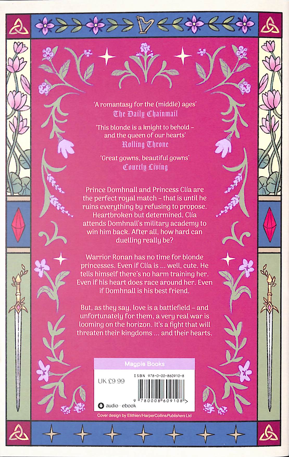 A princess desperate to win back the prince who broke her heart follows him to his kingdom's prestigious military academy – and in doing so, falls in love, saves the realm, and continues to look fabulous, in this romantic debut fantasy. ‘A romantasy for the (middle) ages’ THE DAILY CHAINMAIL ‘This blonde is a knight to behold – and the queen of our hearts’ ROLLING THRONE ‘Great gowns, beautiful gowns’ COURTLY LIVING Prince Domhnall and Princess Clía are the perfect royal match – that is until he ruins everything by refusing to propose.