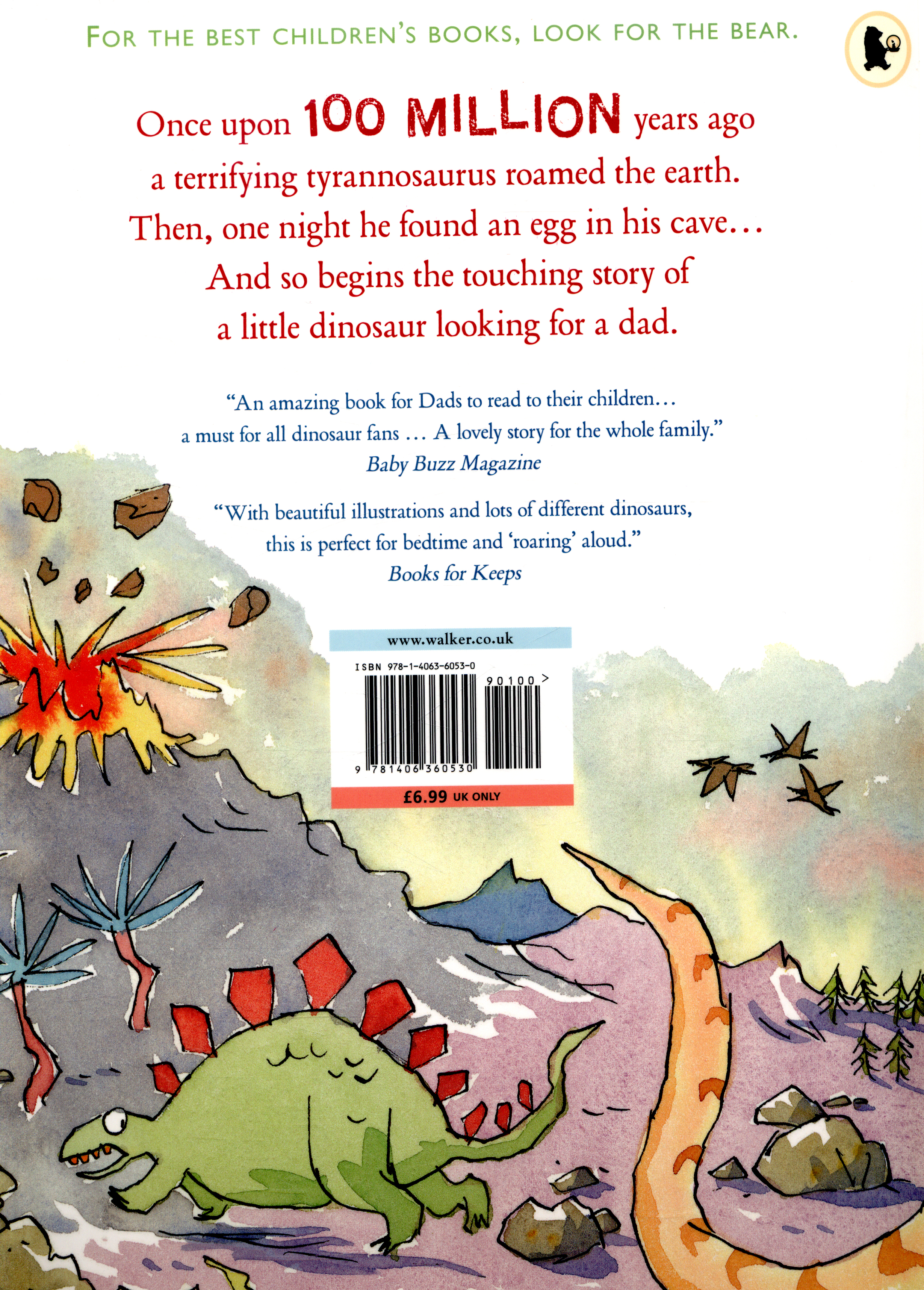 One night, while he is sleeping, an abandoned egg cracks open and what should pop out but a teeny-weeny baby dino who immediately thinks that the T-Rex is his dad! And so begins the touching, funny story of a little newborn dino and his adopted daddy...