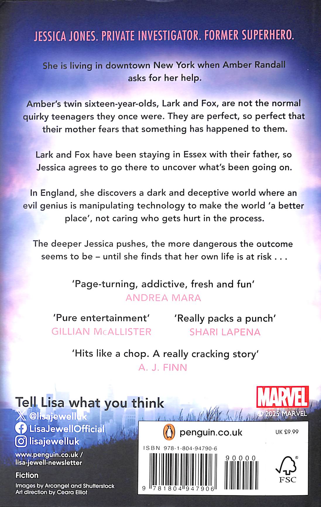 I loved it!' 5-star reader review'An exciting, riveting, adrenaline-pumping story' Liz Nugent, bestselling author of Strange Sally Diamond‘Fresh, lively, insightful—and the action scenes hit like a chop.' AJ Finn, bestselling author of The Woman in the Window'The perfect blend of psychological thriller and supernatural chiller.' Mark Edwards, bestselling author of The Retreat'So cleverly plotted and as ever beautifully written' Harriet Tyce, bestselling author of Blood Orange‘Classic Lisa Jewell with an amazing twist!’ Jenny Colgan, bestselling author of Close Knit'Reveals the depth and complexity of one of the most fascinating and indomitable characters in the Marvel canon.' S.