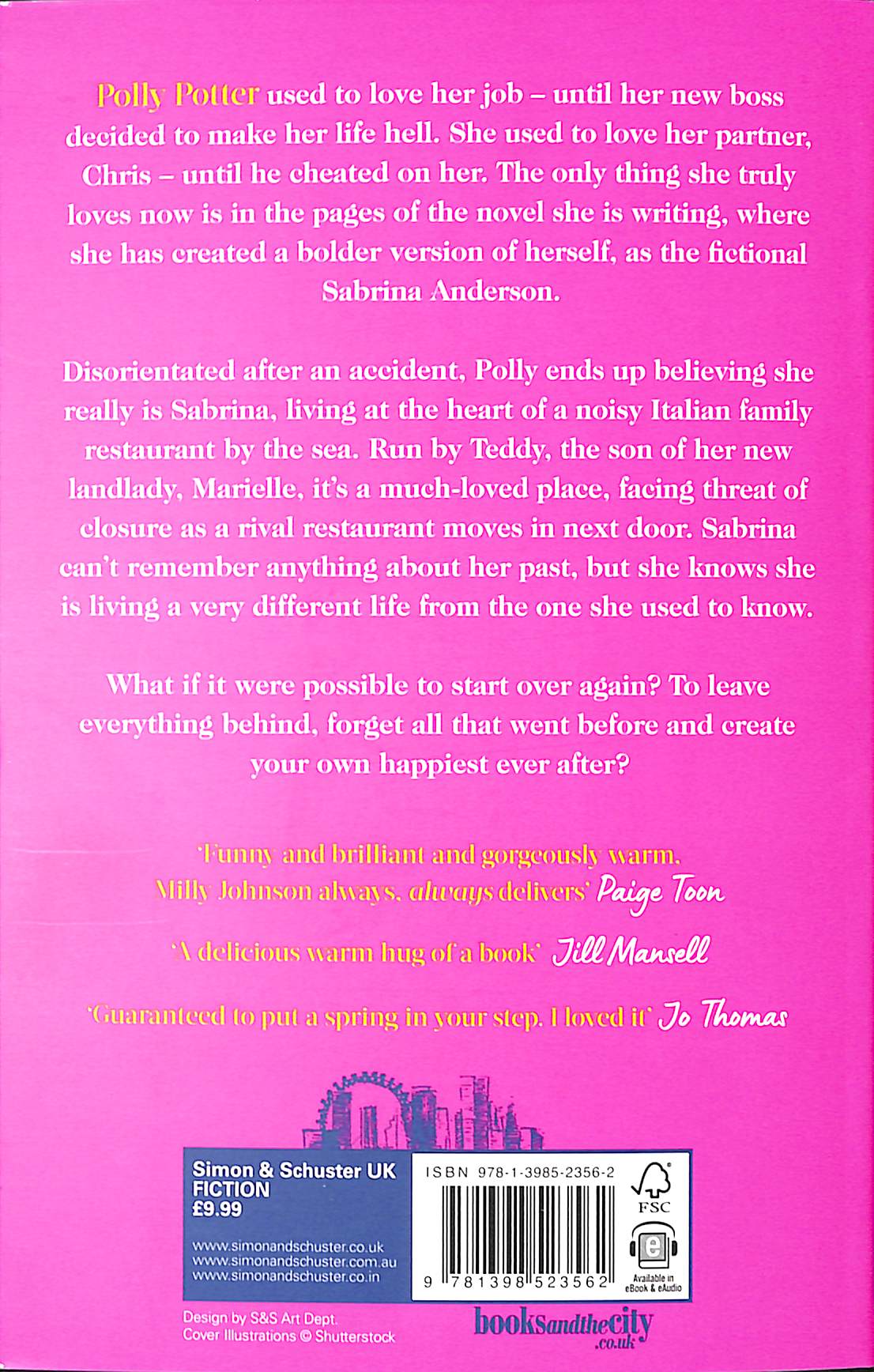 Warm, funny and moving. One to curl up with and devour’ Ruth Jones ‘The feeling you get when you read a Milly Johnson book should be bottled and made available on the NHS’ Debbie Johnson ‘Milly’s writing is like getting a big hug with just the right amount of bite underneath’ Jane Fallon