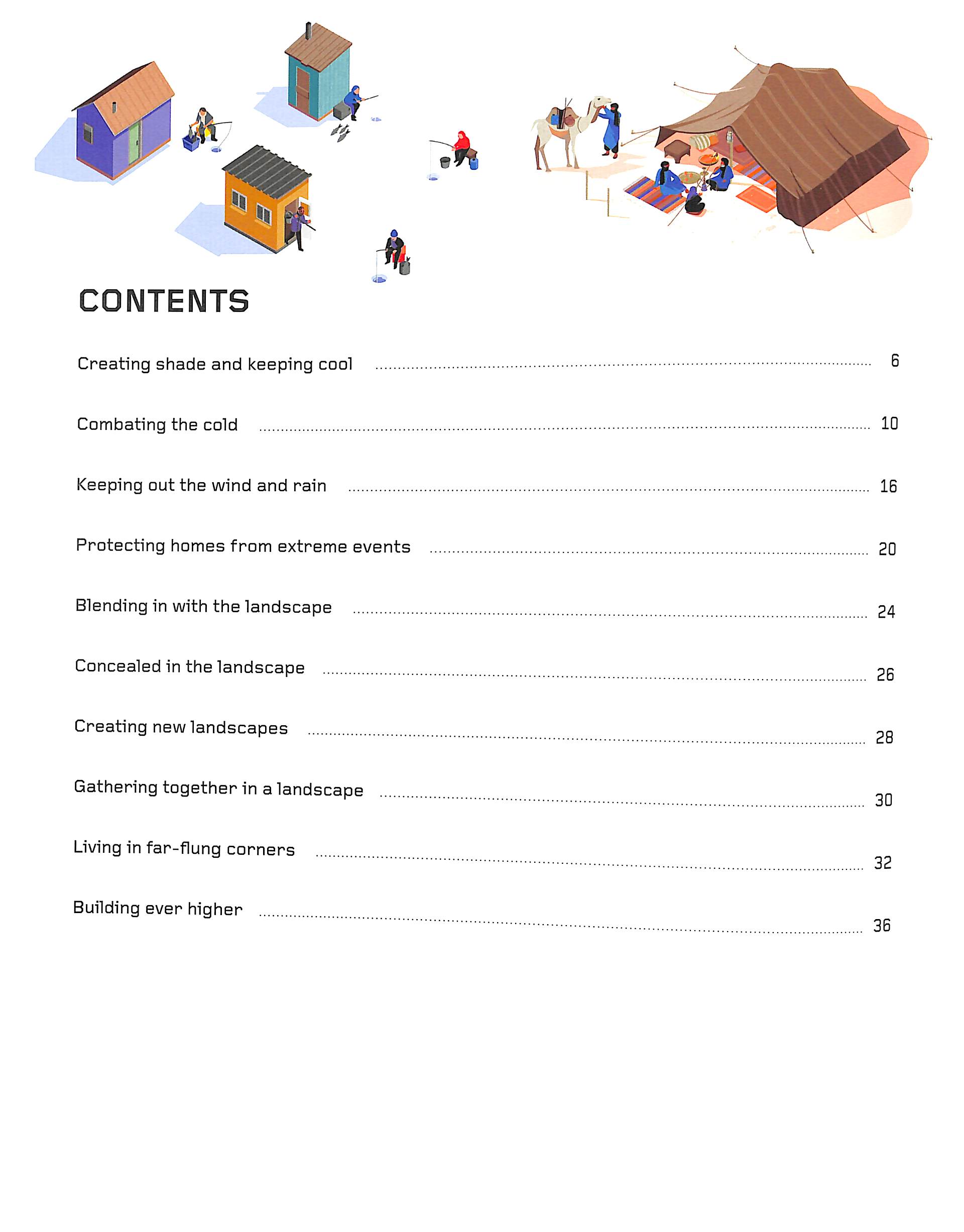 Learn how humans have built dwellings to suit all kinds of habitats. Adapting themselves to all kinds of landscapes and climates, over the centuries humans have used their architectural ingeniousness to build amazing dwellings: find them here, from houses on stilts and igloos to tree houses and skyscrapers. Fully illustrated with clear, engaging artwork and intelligent, simple and original text presented in a clean, appealing design.