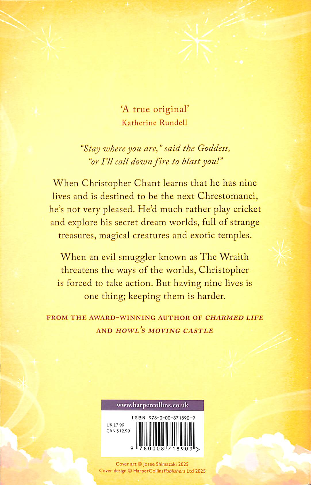 Glorious new rejacket of a Diana Wynne Jones favourite, exploring the childhood of Chrestmanci – now a book with extra bits! Discovering that he has nine lives and is destined to be the next ‘Chrestomanci’ is not part of Christopher’s plans for the future: he’d much rather play cricket and wander around his secret dream worlds.
