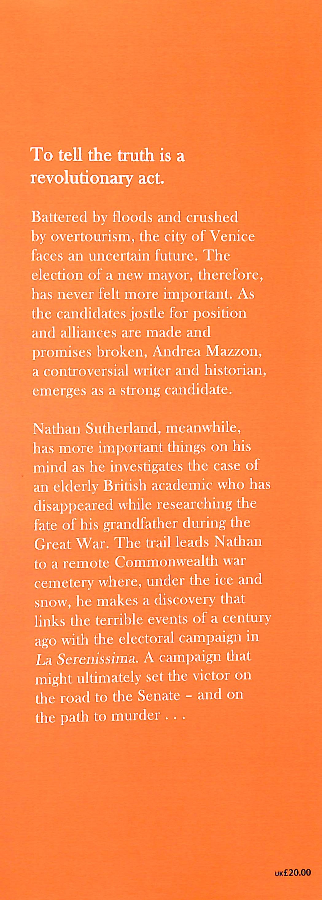 The trail leads to a remote Common-wealth war cemetery where, under the ice and snow, Nathan makes a discovery that links the terrible events of a century ago with the electoral campaign in La Serenissima.