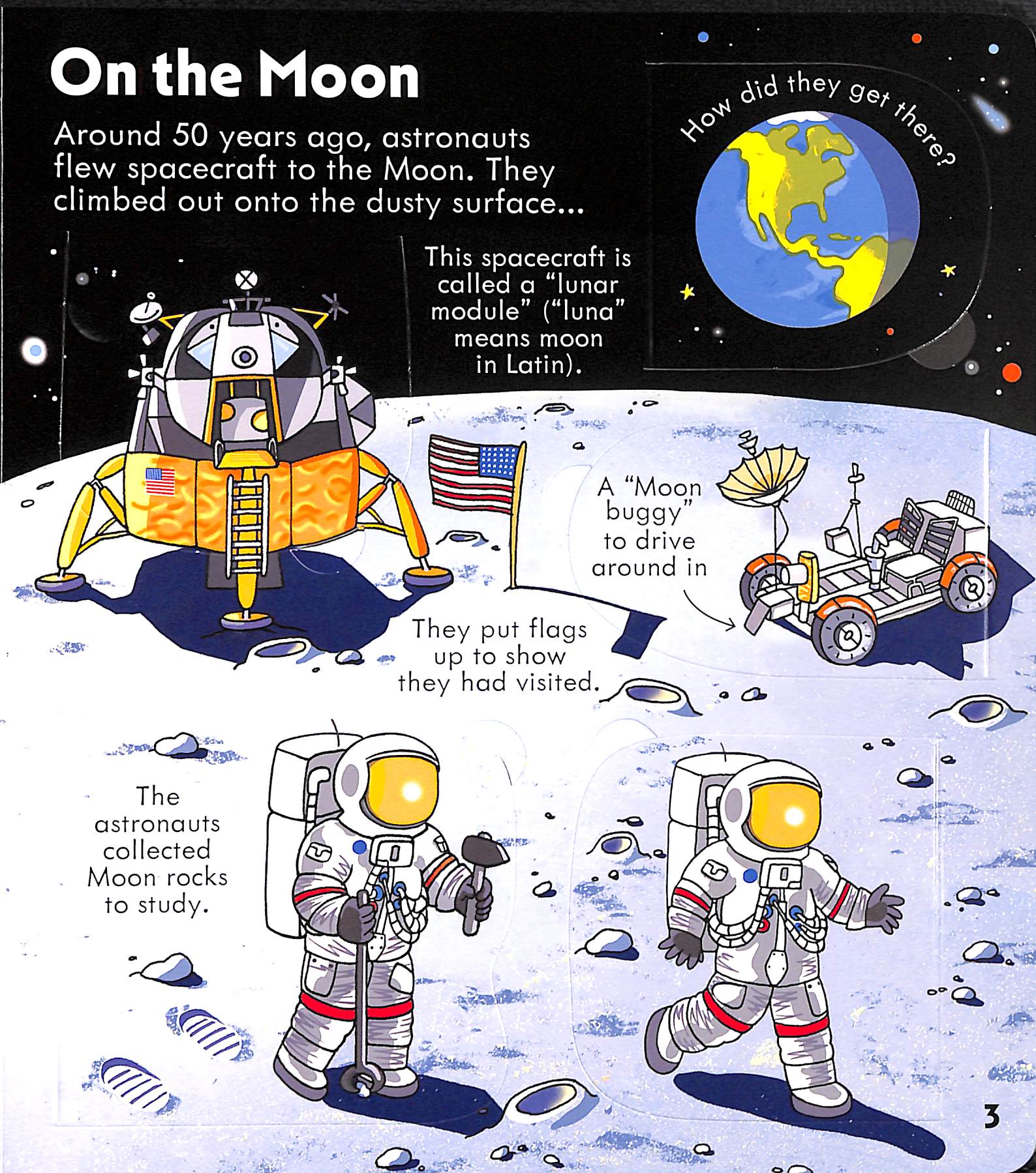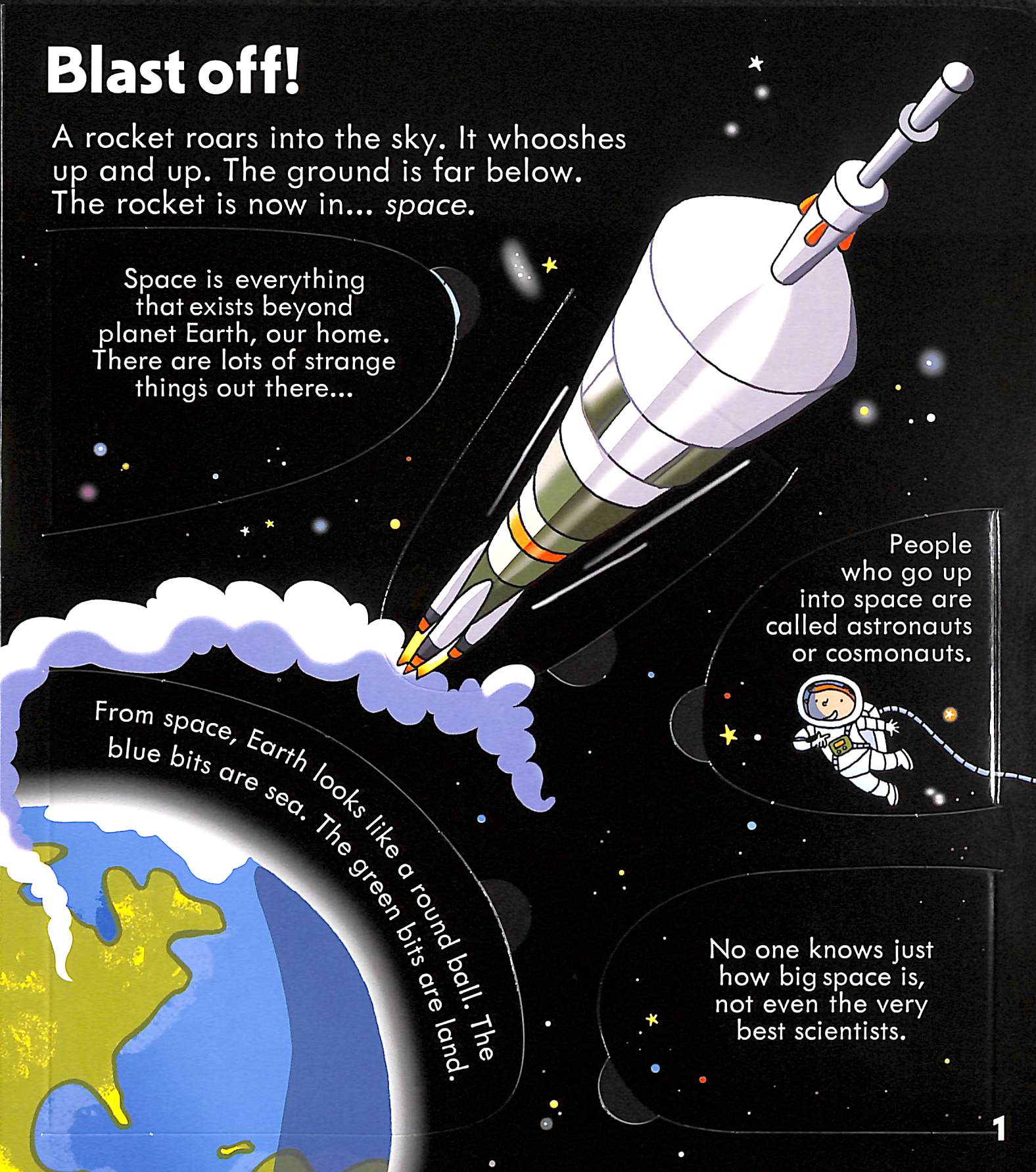 Children can blast off into space with this fantastic interactive flap book revealing the secrets of the Universe. Explore the answers to questions including, Why do stars shine? And how was the moon made? Learn about the different ways astronomers have viewed stars, see how some astronauts live on the International Space Station and find out what we know about the Moon. - Vibrant illustrations and simple explanations combine with over 70 flaps to lift. - Each double page covers a different topic, including 'Glittering galaxies', 'On the Moon' and 'Space Station'. - Discover more from Usborne's Look Inside series, including farms, coral reefs, volcanoes and oceans.