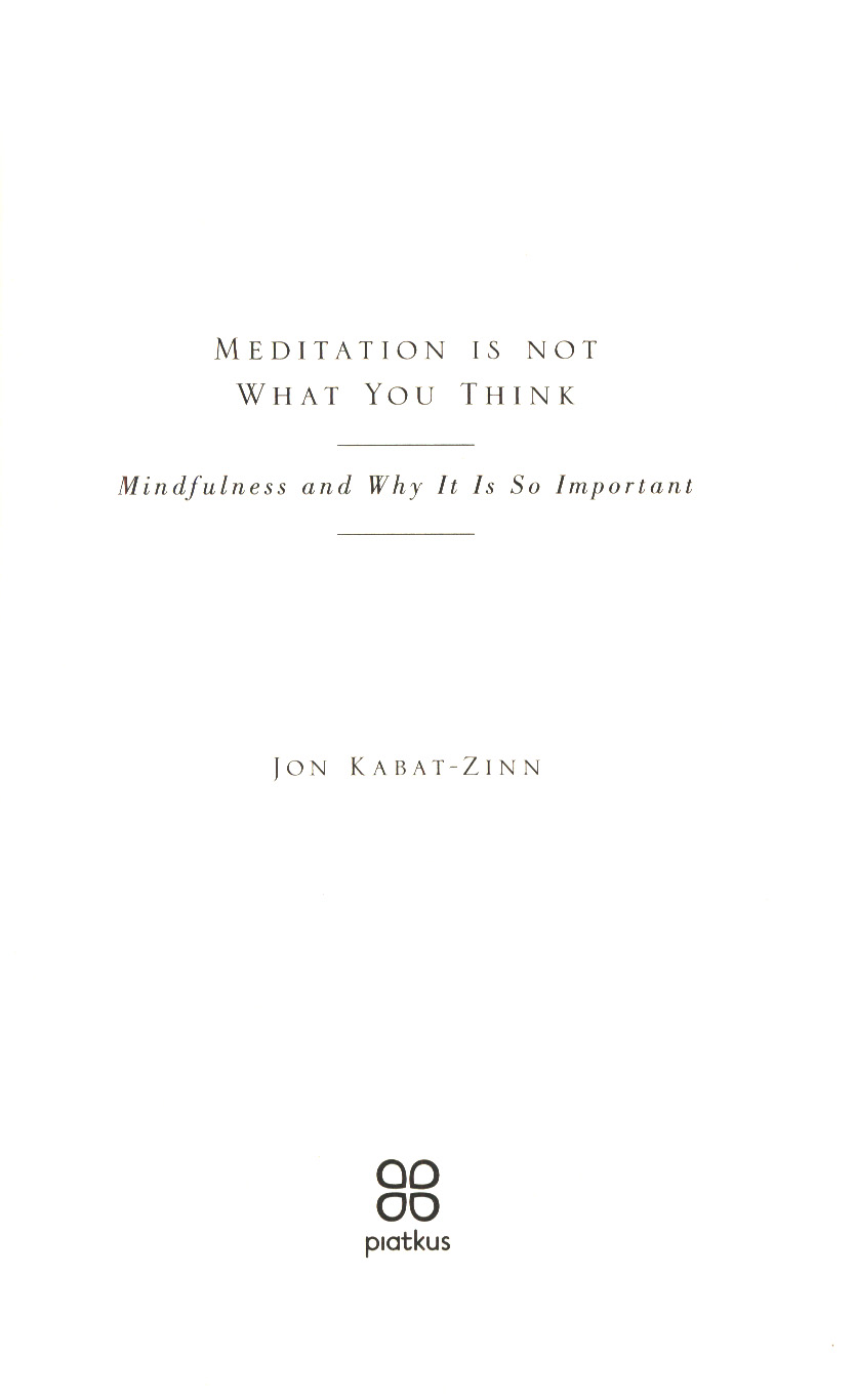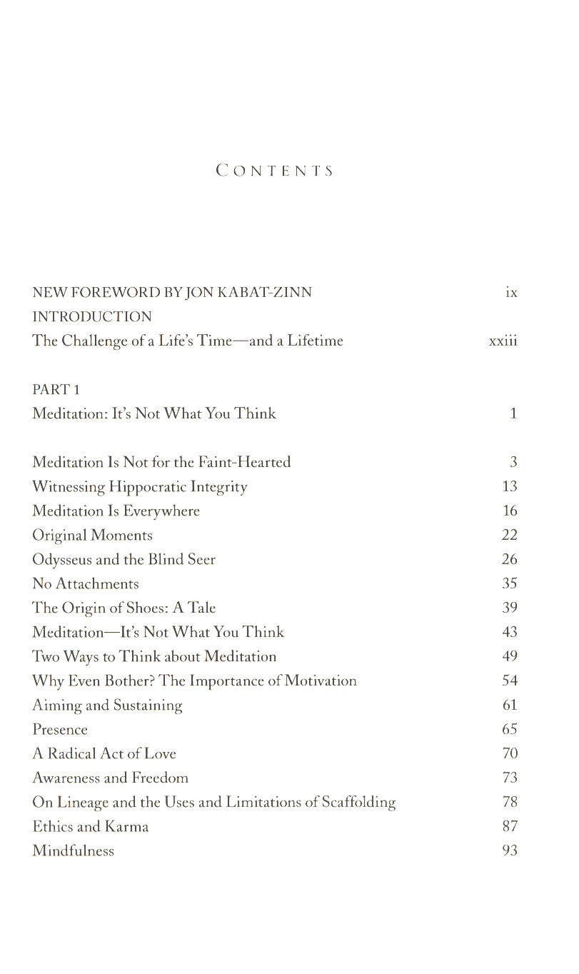 In the first of these books, Meditation Is Not What You Think (which was originally published as Part I and Part II of Coming to Our Senses), Kabat-Zinn focuses on the "what" and the "why" of mindfulness--explaining why meditation is not for the "faint-hearted," how meditation can actually be a radical act of love, and why paying attention is so supremely important.