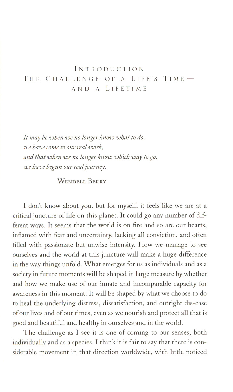 He followed that up with 2005's Coming to Our Senses, the definitive book for our time on the connection between mindfulness and our well-being on every level, physical, cognitive, emotional, social, planetary, and spiritual.