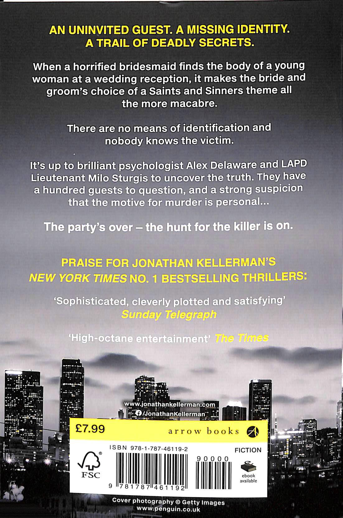 _________________________Jonathan Kellerman’s legendary thrillers have sold over 80 million copies. This might be his best yet. An uninvited guest. A missing identity. A trail of deadly secrets. When a horrified bridesmaid finds the body of a young woman at a wedding reception, it makes the bride and groom’s choice of a Saints and Sinners theme all the more macabre. There are no means of identification and nobody knows the victim. The bride is convinced someone is trying to sabotage her big day.