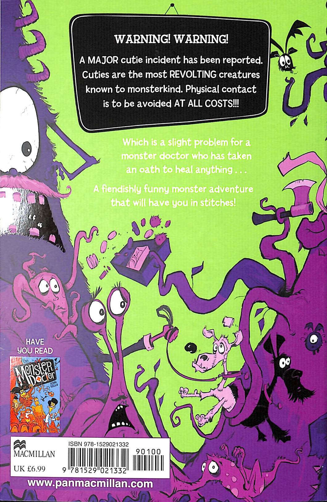 The Monster Doctor: Revolting Rescue is the second in a howlingly hilarious series of monster adventures from John Kelly that will have you laughing your head off . . . literally. WARNING! THIS IS AN EMERGENCY. There's been a major Q-T incident reported in Cringetown – we need the monster doctor, stat!Q-Ts are highly dangerous to all monsters – they have huge eyes, tiny noses, squeaky high-pitched voices and are covered in a disgustingly soft fur-like material.