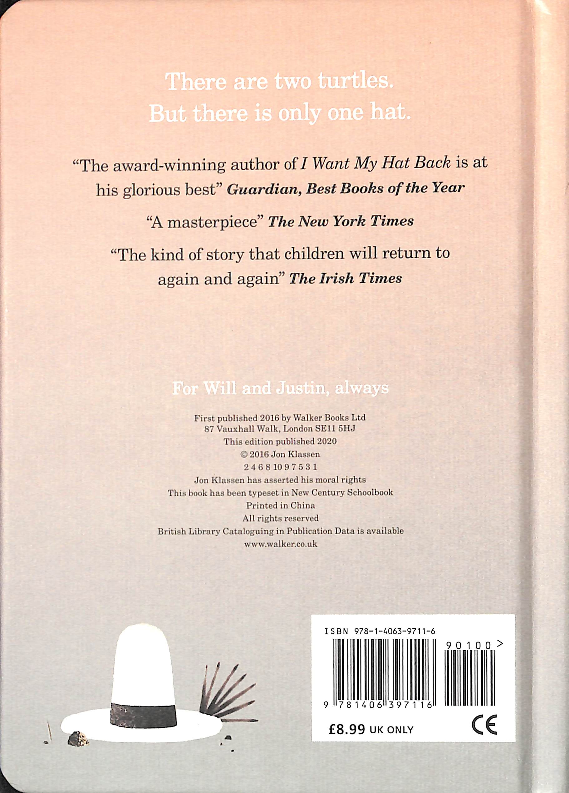 Jon Klassen for the smallest hands! The final book in the award-winning HAT trilogy in board book form. A NEW YORK TIMES BESTSELLER"A masterpiece of honest feelings, emotional tension and poetic restraint" New York Times“The award-winning author of I Want My Hat Back is at his glorious best” Guardian Best Books of the Year"The perfect ending to Jon Klassen's Hat trilogy" BookTrustTwo turtles have found a hat. The hat looks good on both of them. But there are two turtles. And there is only one hat... Collect all three HAT books:I Want My Hat BackThis is Not My HatWe Found a Hat