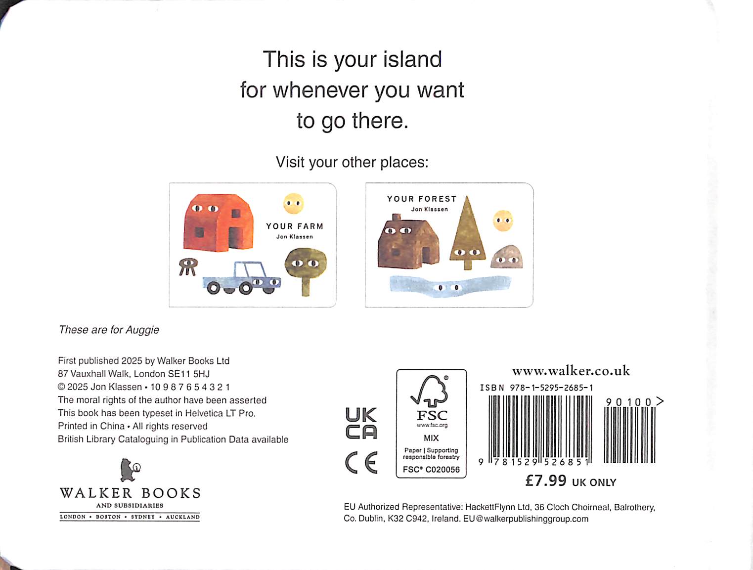 One in a trio of board books focussing on safe spaces, comfort and imagination. Praise for Your Forest: "A comforting board book about imagination and safe spaces from the legendary author of I Want My Hat Back that creates a charming forest from a handful of familiar objects." - Waterstones"Full of the usual Klassen charm, young children will enjoy the simple and straightforward way this book is written, while adults will appreciate the deadpan humour." - The ScotsmanDiscover more of Your Places:Your FarmYour ForestCollect Your Things:Your TruckYour Horse