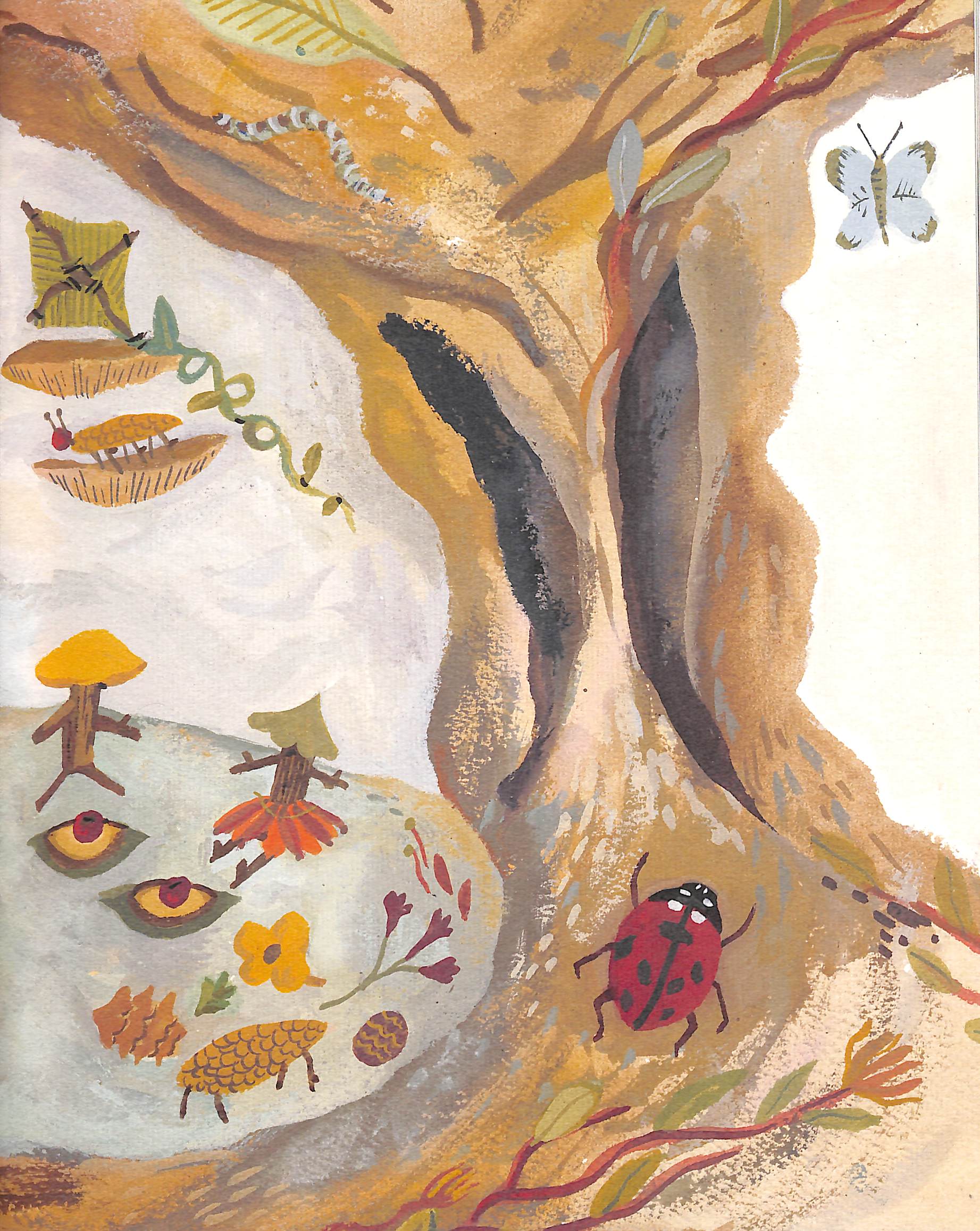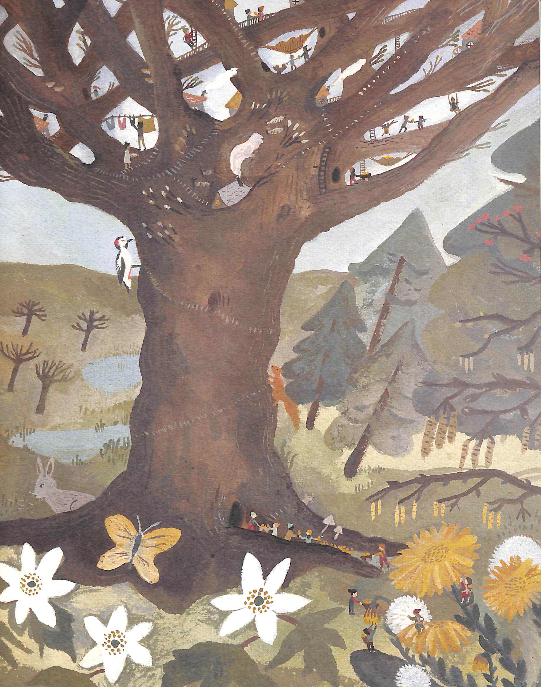 At the edge of the woods, there is a great tree. Peep through the branches and you might just see some little people who stand as tall as your thumb and have heads the size of hazelnuts. Sylvia prefers to be alone rather than play noisy games with the other Tree Keepers.