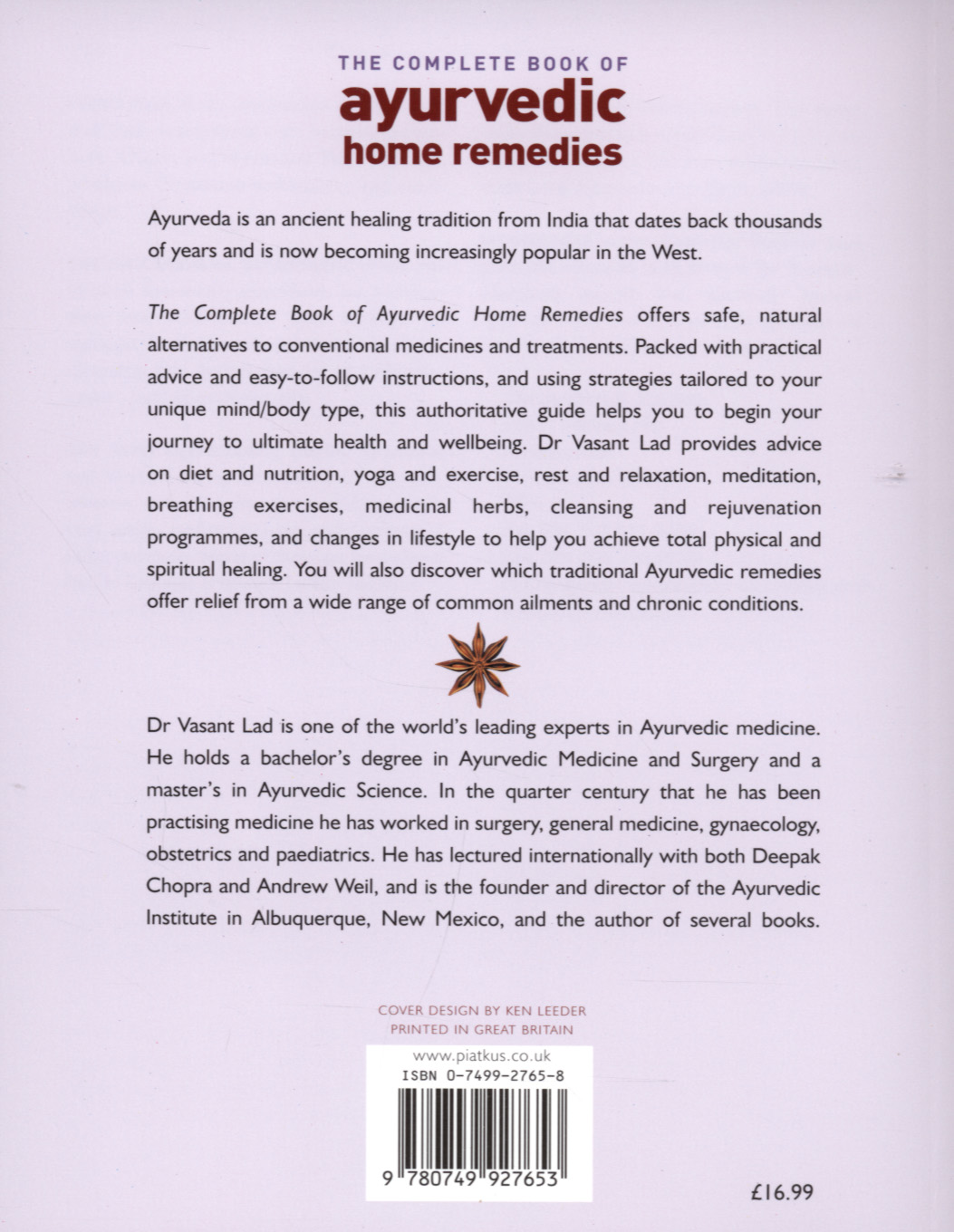 The Complete Book Of Ayurvedic Home Remedies by Lad, Vasant (9780749927653) | Browns Books